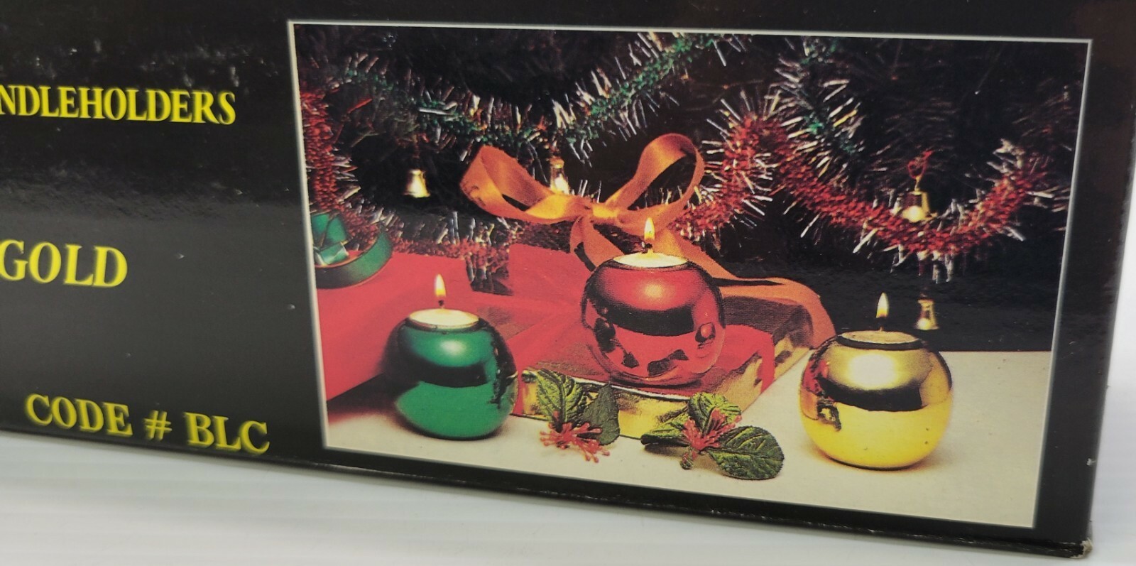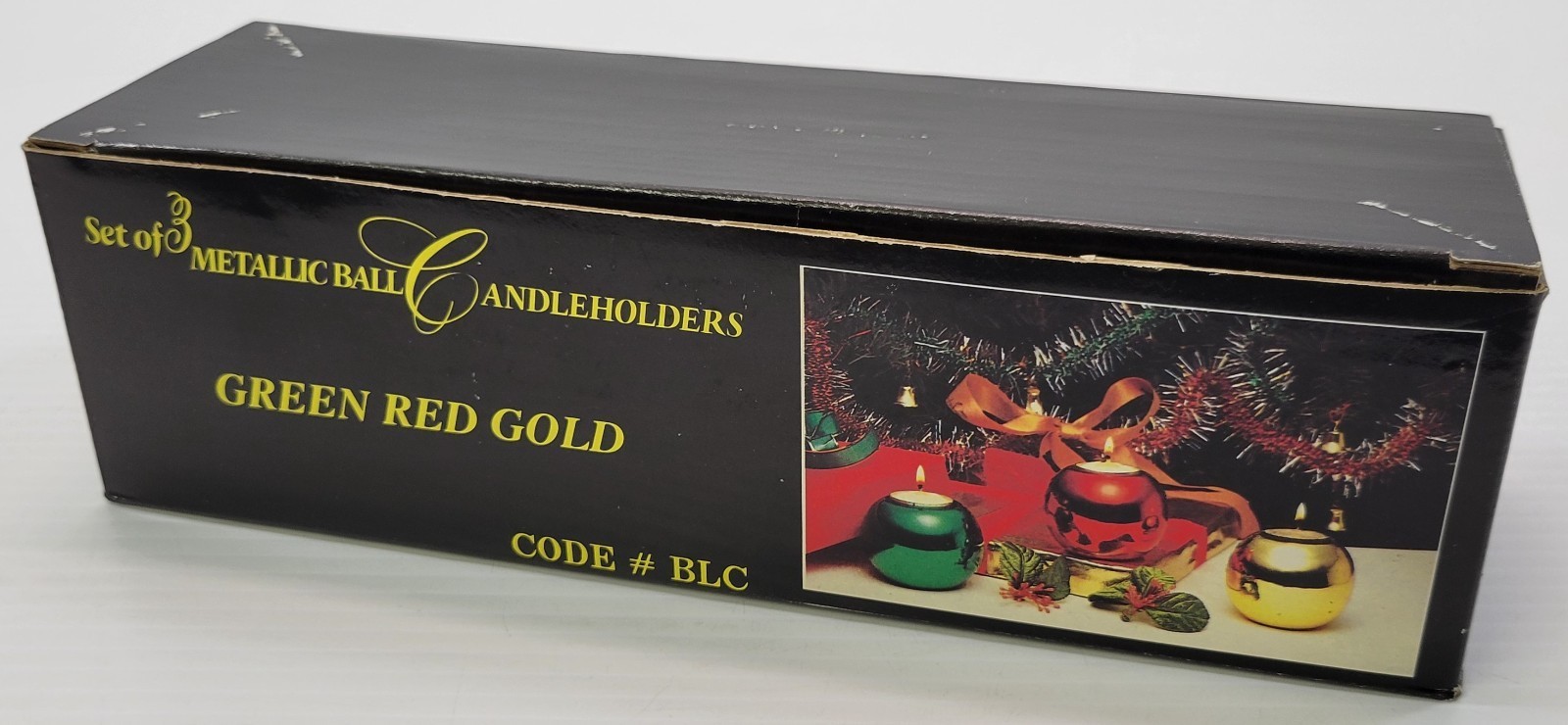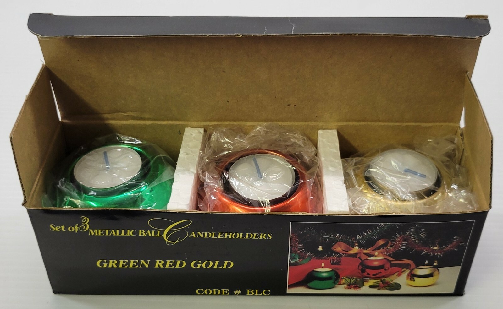 *D2) Vintage Christmas Set of 3 Metallic Ball Ornament Tea Light Candle Holders