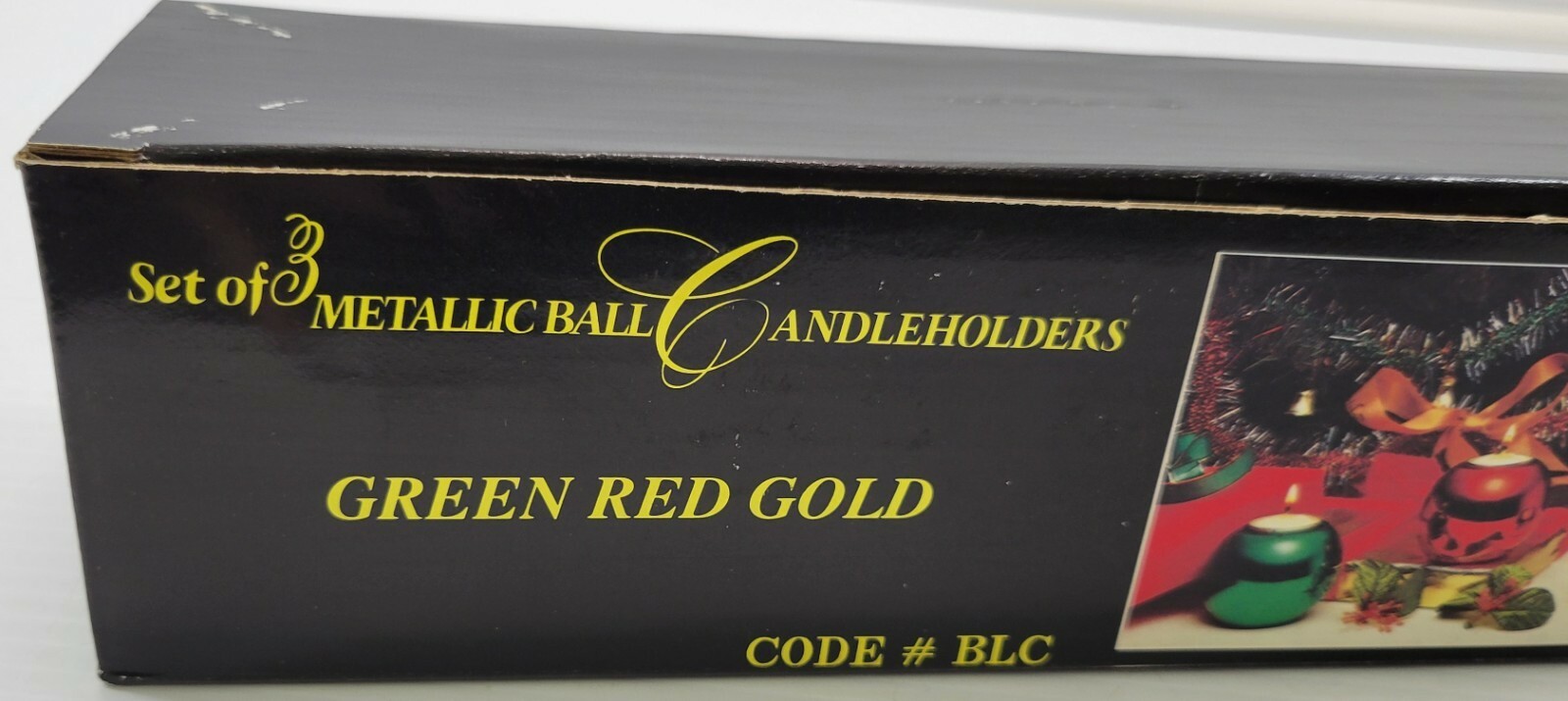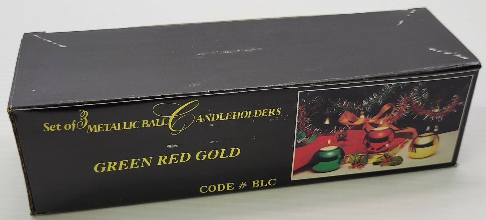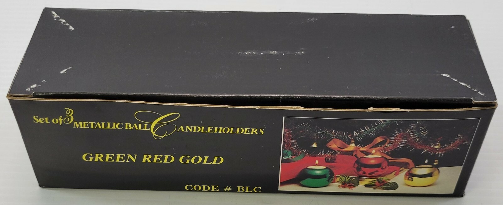 *D2) Vintage Christmas Set of 3 Metallic Ball Ornament Tea Light Candle Holders