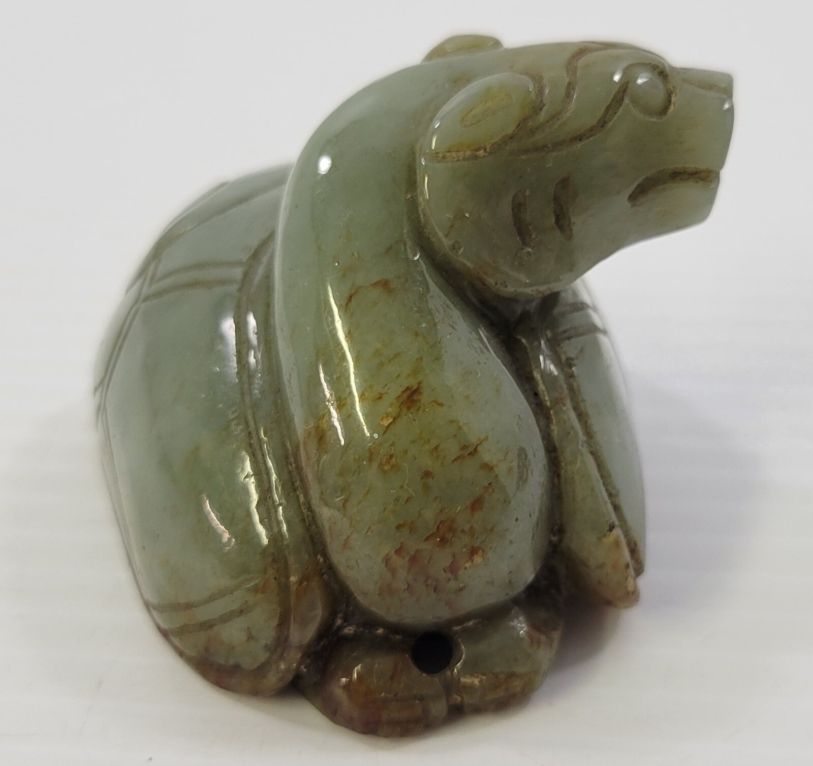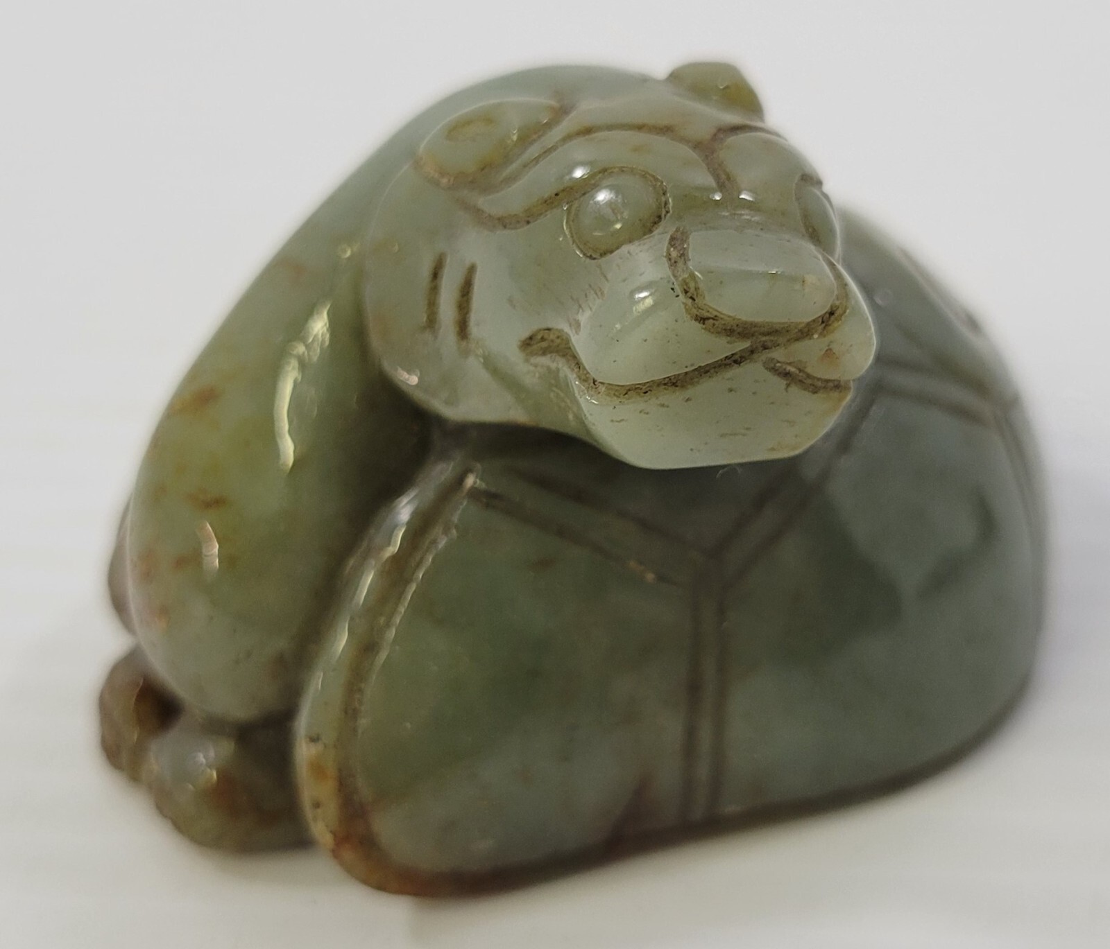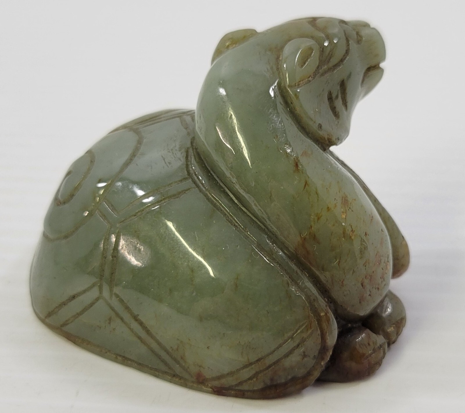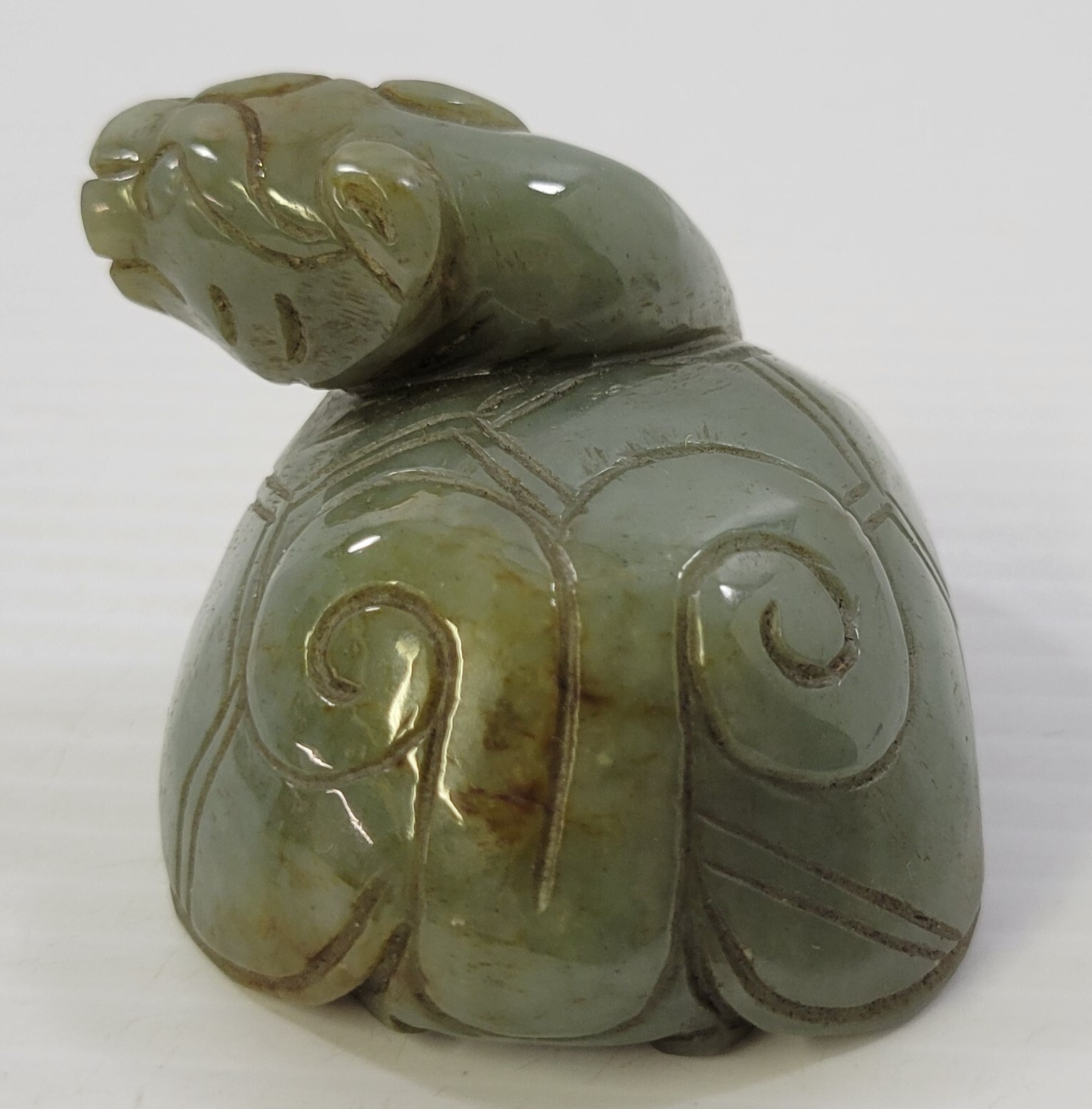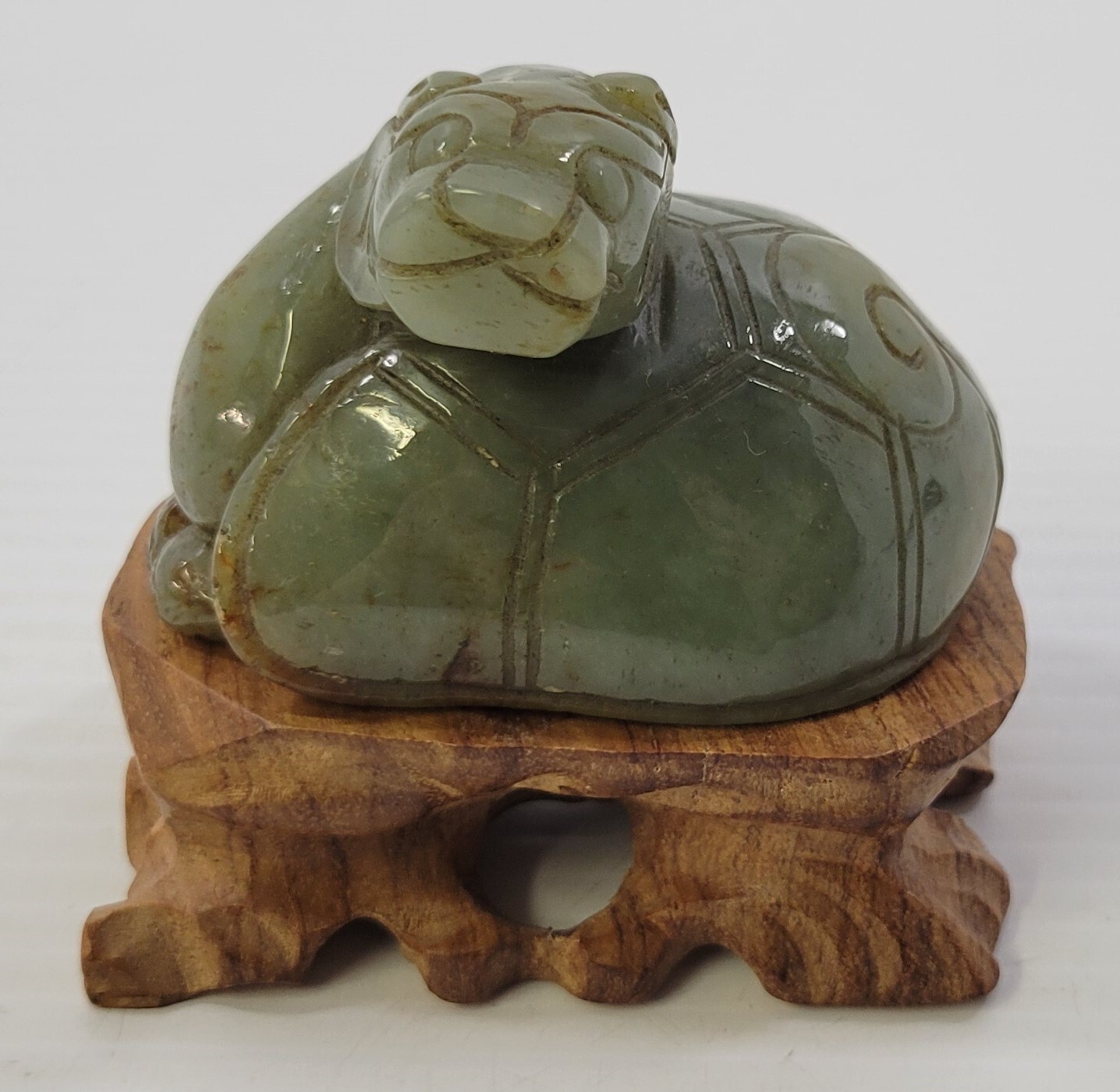 *B2) Antique Chinese Feng Shui Dragon Turtle Jade Statue Figurine on Wooden Base