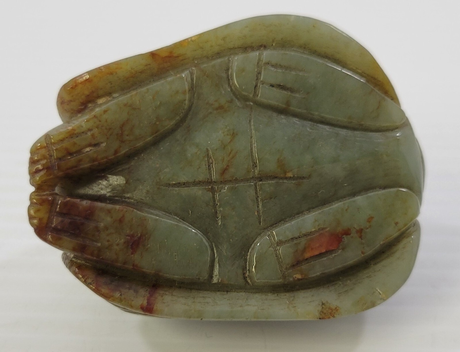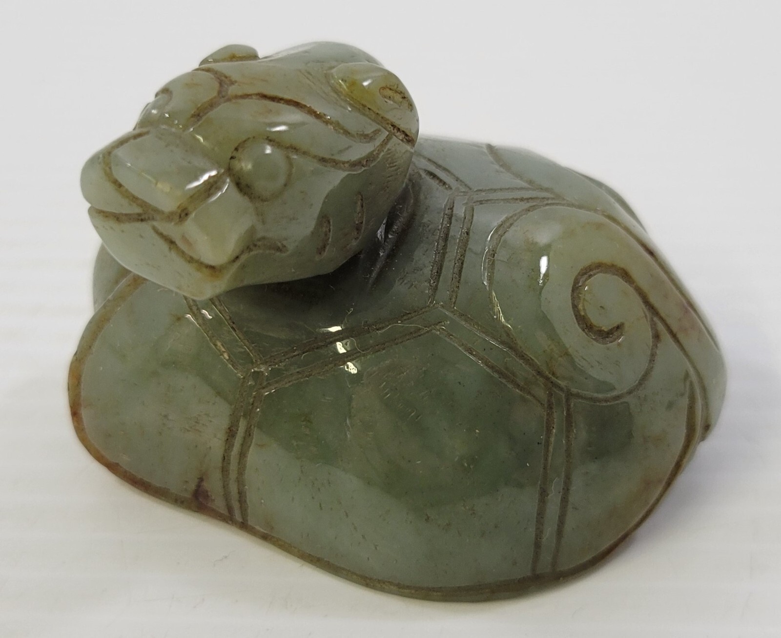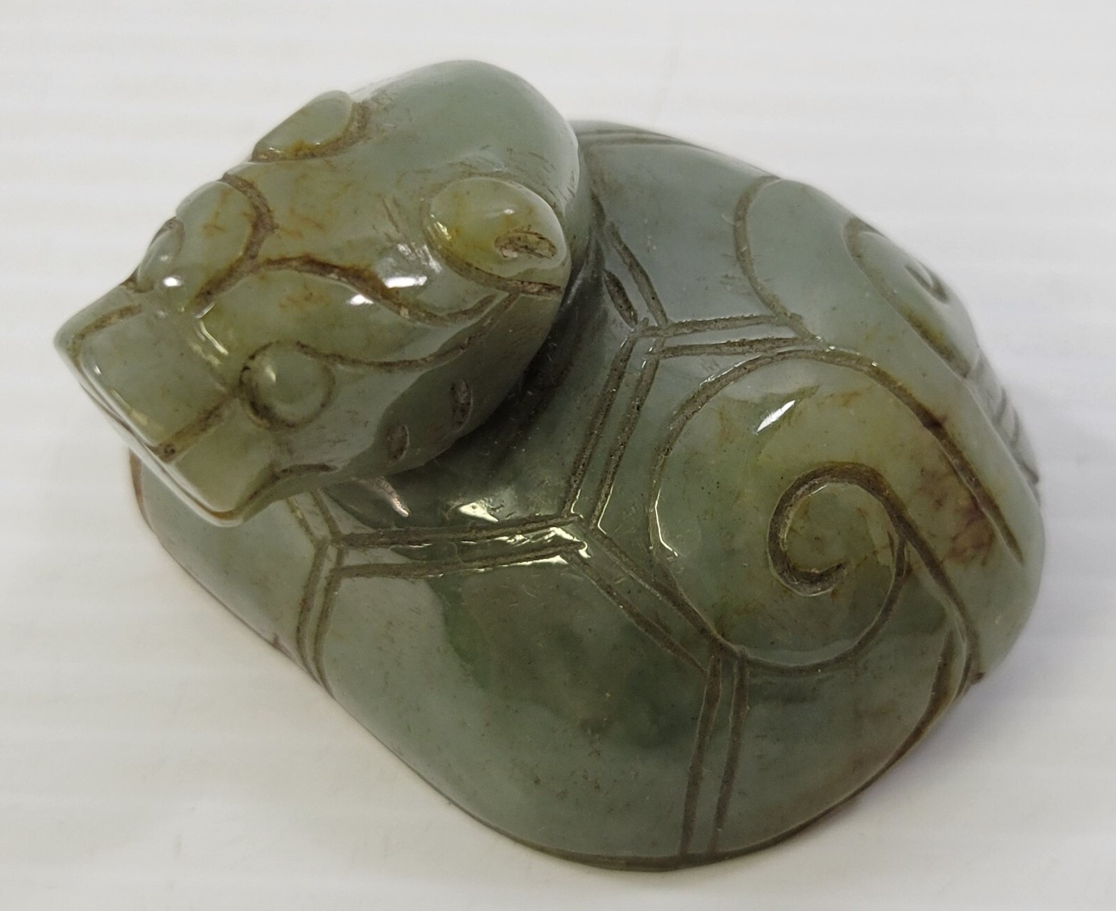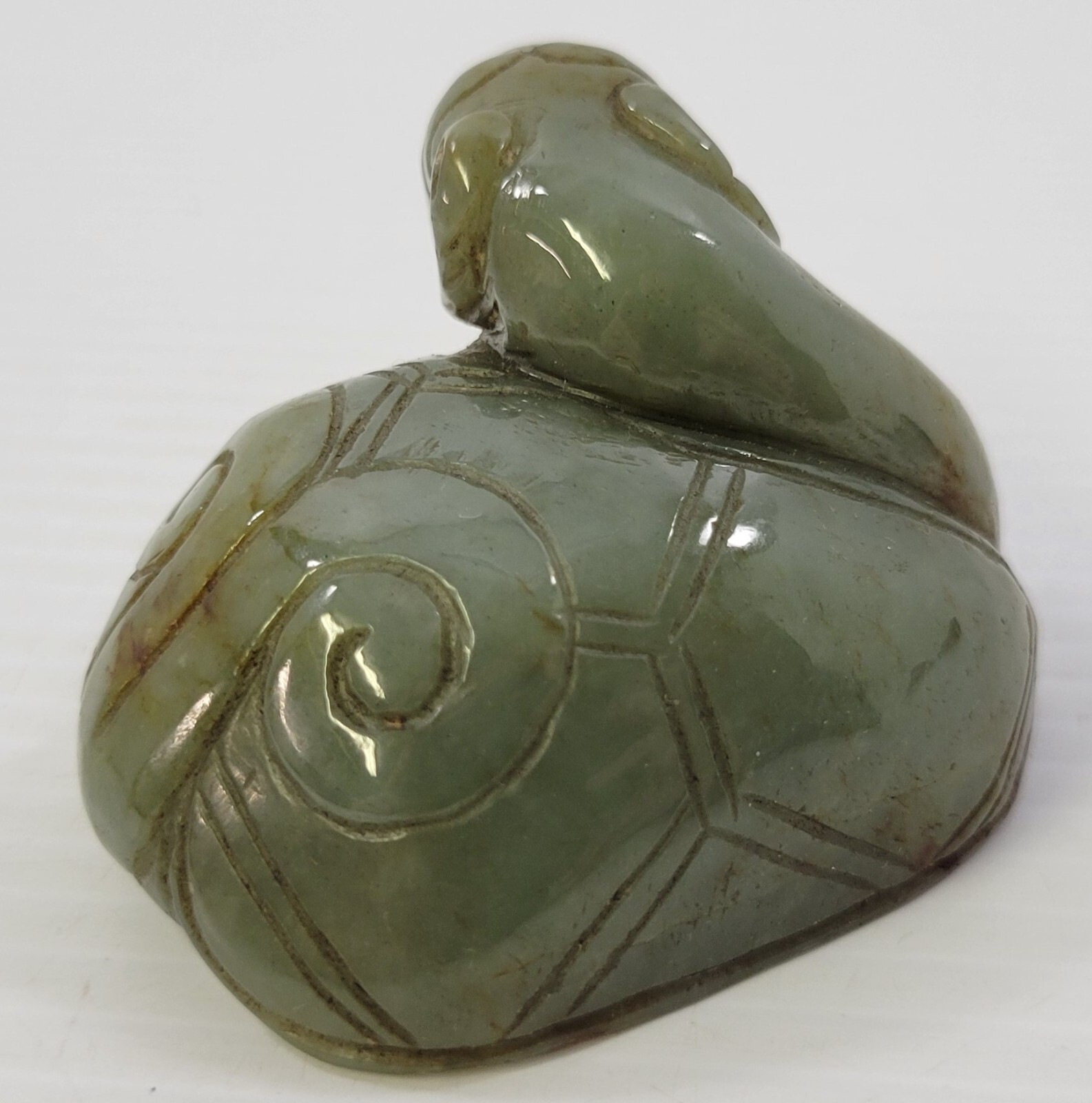 *B2) Antique Chinese Feng Shui Dragon Turtle Jade Statue Figurine on Wooden Base