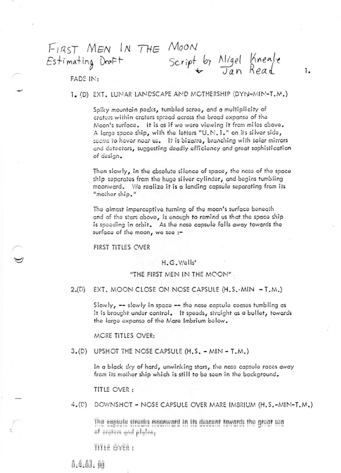 This is a reproduction of the shooting script from 1964’s sci-fi adventure written by Nigel Kneale and Jan Reed based on the classic H.G. Wells novel. The tale stars Edward Judd, Lionel Jeffries and Martha Hyer. Ray Harryhausen, who created the boffo stop-motion special effects, signed the cast and credits page. The punch-holed 138-pager’s condition is Mint.