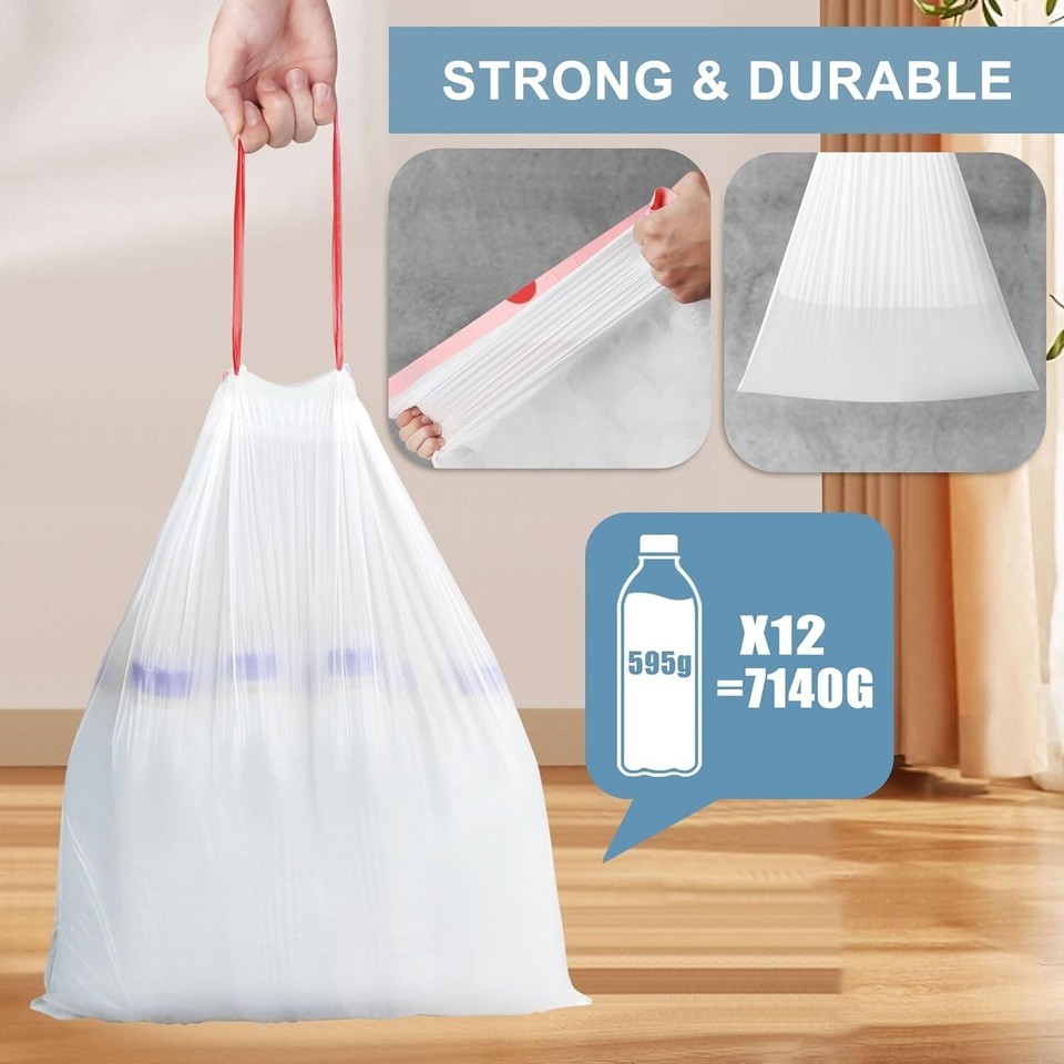 Handy Drawstring - JUKFITA 4 gallon trash bag has two-ply built-in drawstring, tying up when garbage full, no falling out, no odours leaking, saving your time and no dirty hands.