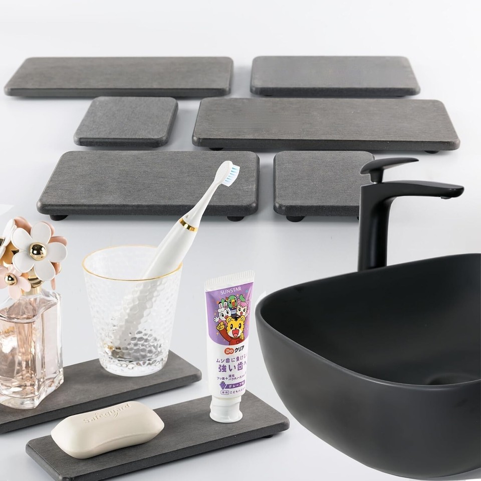 2?Made from natural Diatom mud and plant fiber, small holes within diatomite enable it have amazing water absorption. They could absorb water and gets dry in a few minutes. It makes the Bathroom Counter top more dry and tidy.