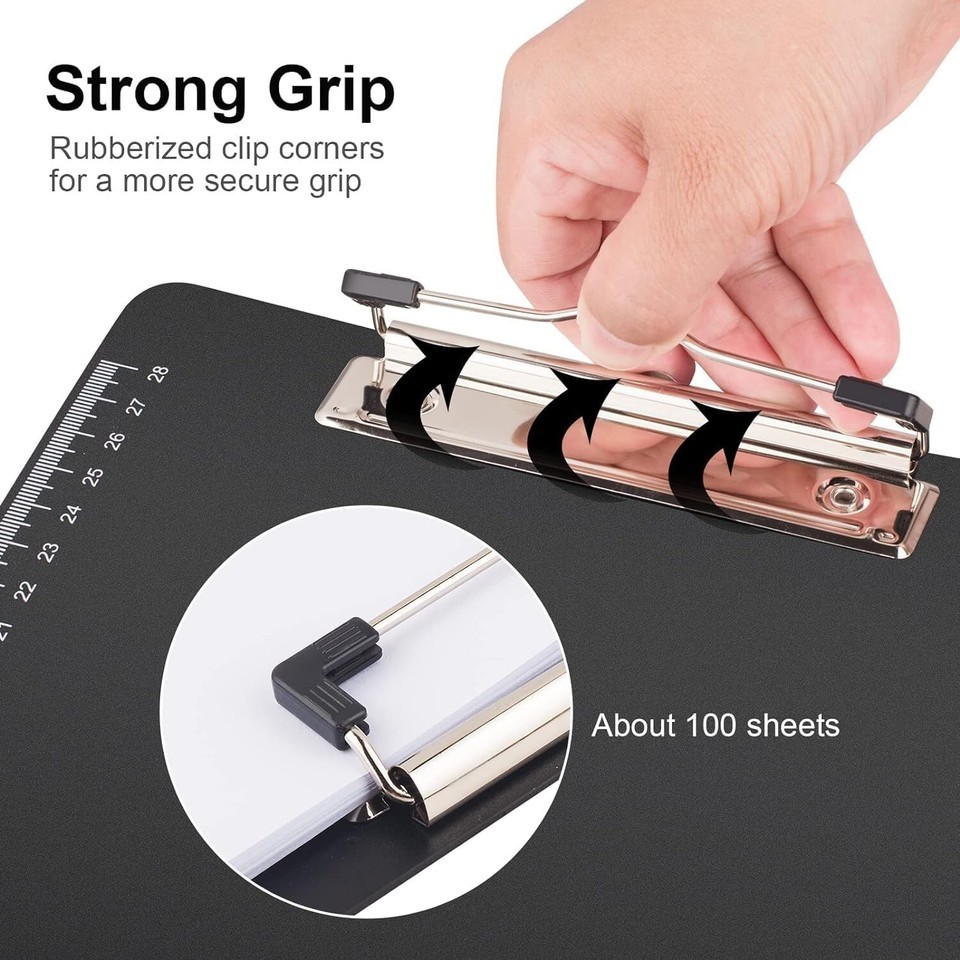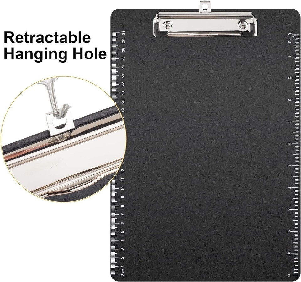 Package includes 2 pack quality black plastic clipboard with Ruler