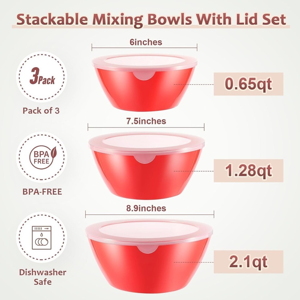 Mixing Bowls with Lids Set Plastic Mixing Bowls for Kitchen (Set of 3)