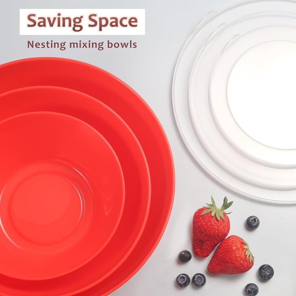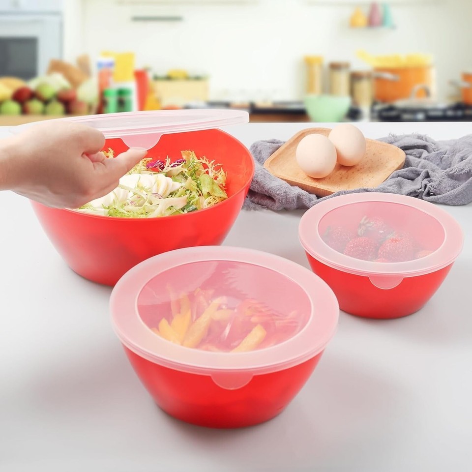 ?? ?Transparent Lids?These plastic bowls come with clear plastic lids, ideal for storing foods in the refrigerator as well as mixing and serving.Each lid is transparent to quickly identify the food and ingredients stored inside.