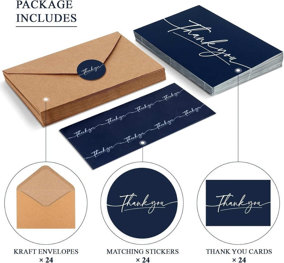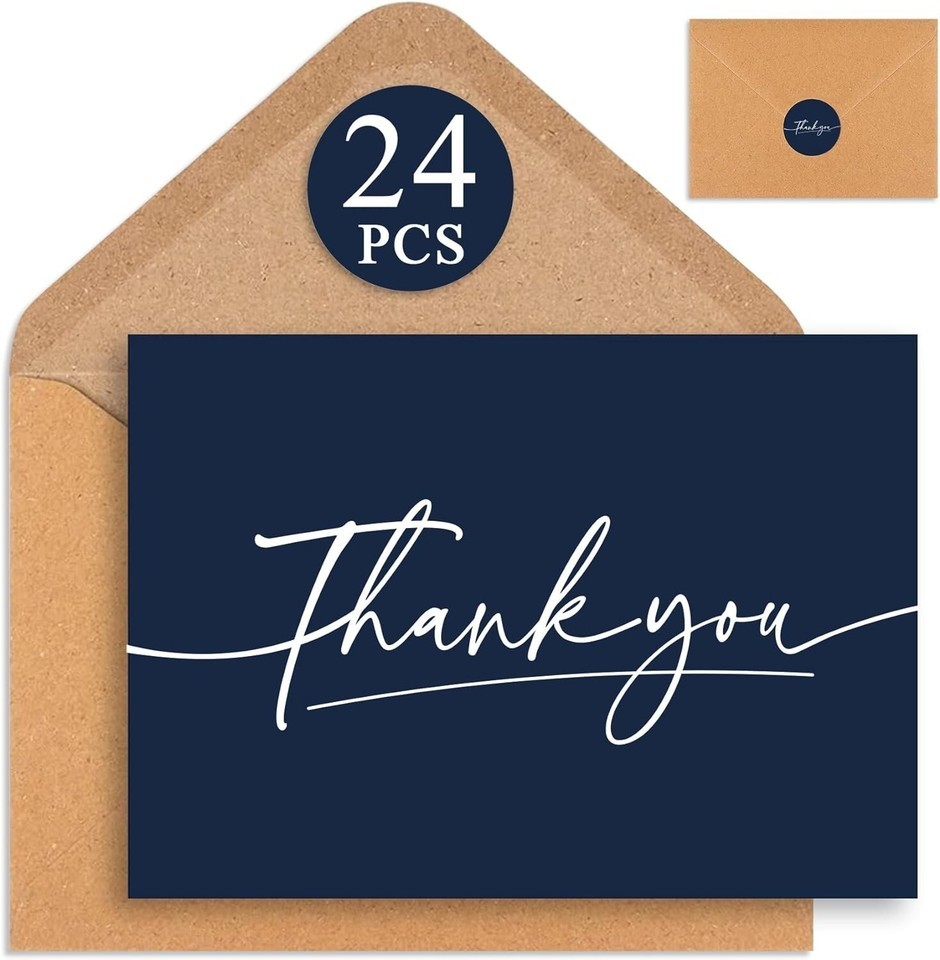 Thank You Cards With Envelopes 24 Pack, 4x6 Inch Thank You Cards Bulk Navy Blue