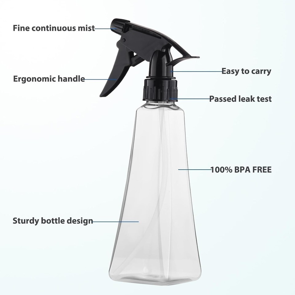 Spray Bottles (2-Pack, 12 Oz.) Mist/Stream, Plastic Water Spray Bottle for Hair,.