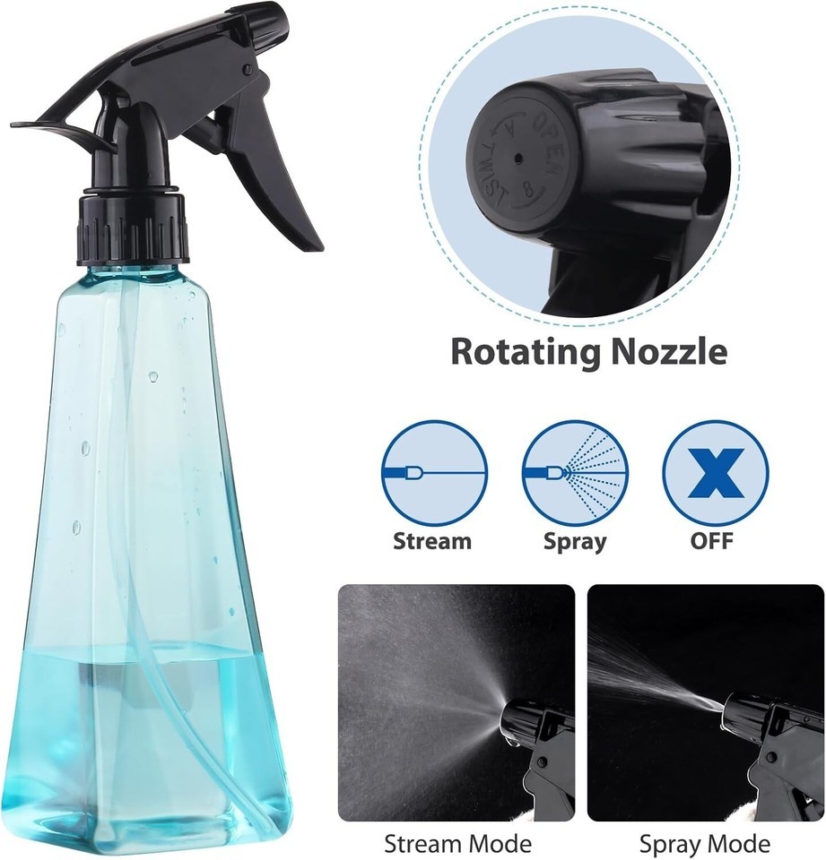 Spray Bottles (2-Pack, 12 Oz.) Mist/Stream, Plastic Water Spray Bottle for Hair,