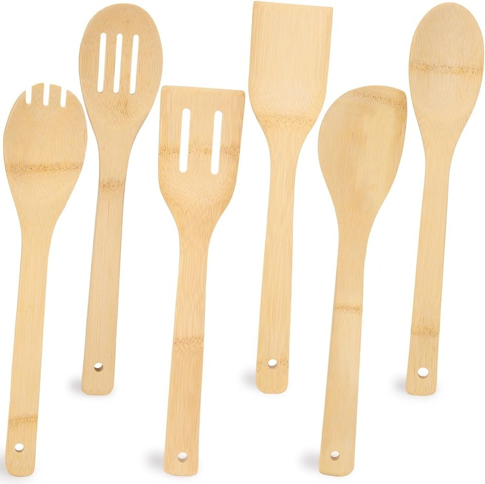 Cooking Essentials Kitchen Set - You'll receive 6 different styles of bamboo utensils to cater to a wide range of your cooking needs. The soup spoon makes serving creamy soups a breeze, while the spatula, slotted spoon, and fork are perfect for flipping, stirring, and serving dishes like steak, fresh salad, and sauces.