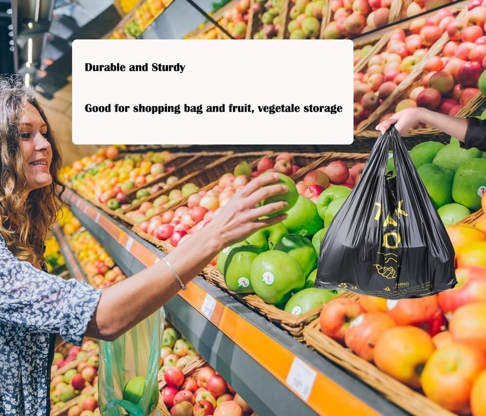 Shopping Bag Quantity: 50 ct of disposable black plastic shopping bags in one bag for your business needs.