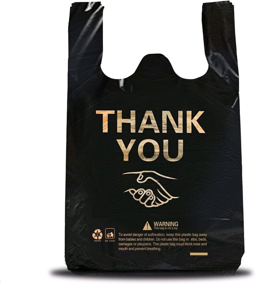ysmile 50 pcs Thank You Plastic T Shirt Bags for Small 7x15 Inch from Black