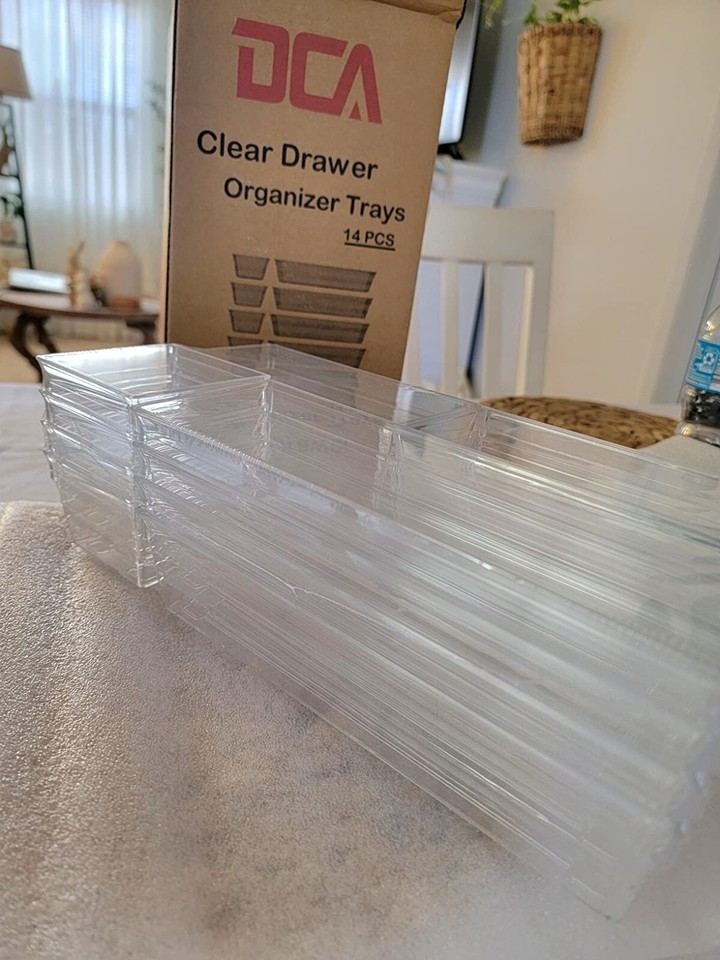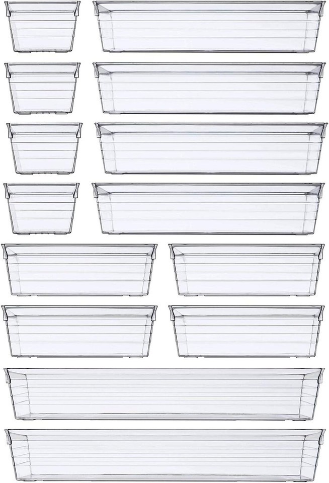 14 PCS Clear Plastic Drawer Organizer Tray for Makeup, Kitchen Utensils