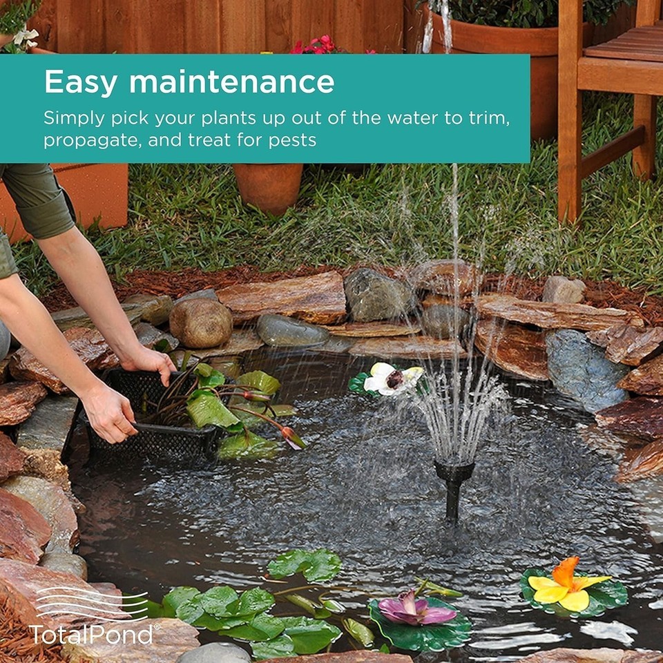 A quick installation is easy with the Aquatic Plant Basket; place the aquatic plant and soil in the basket and carefully lower it into your pond.