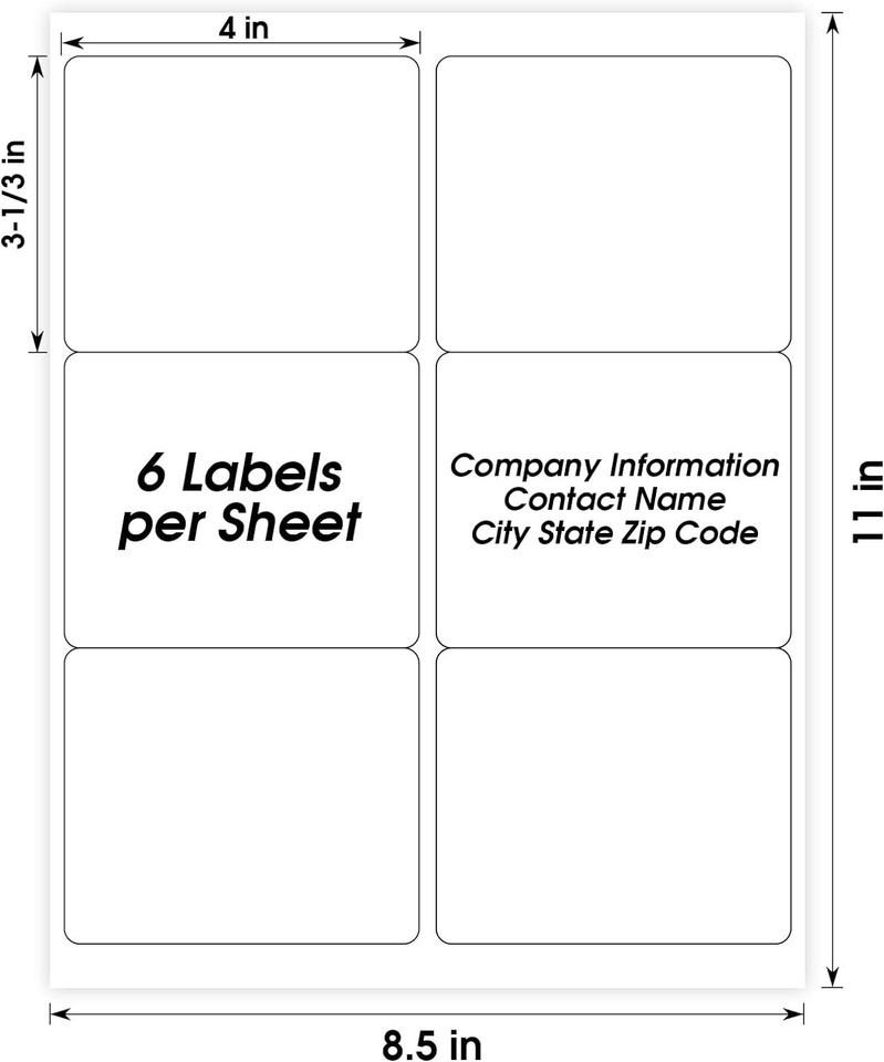 SPECIFICATION: Blank matte white shipping address labels. Standard letter size 3-1/3" x 4". Includes 30 sheets with 6 labels per sheet, totaling 180 labels.