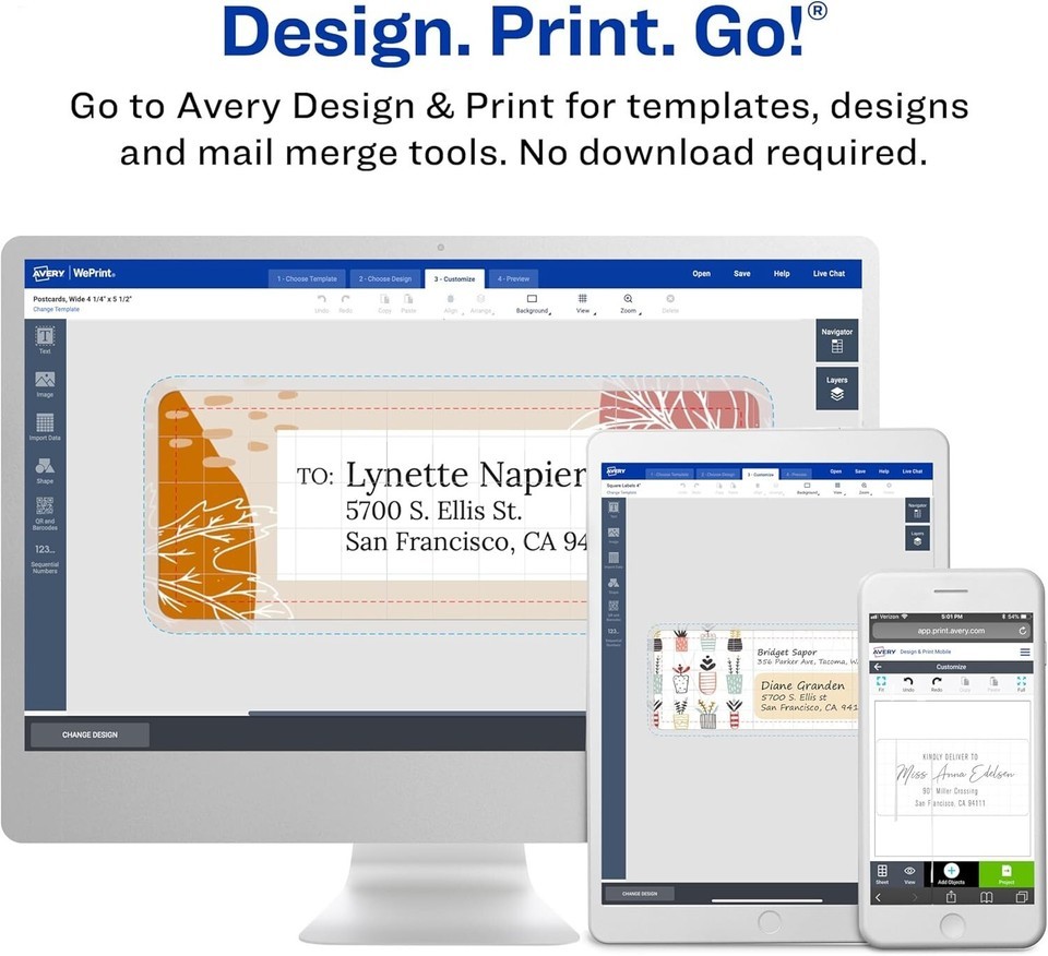 Create custom labels using Avery Design Print Online, which offers templates, designs, and easy-to-use tools for creating professional-quality labels