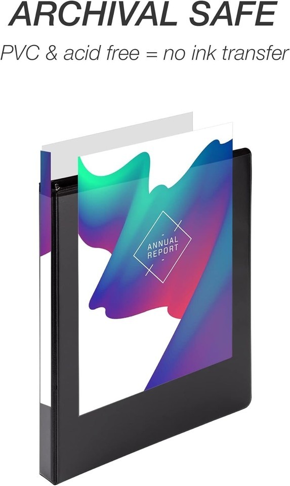 Archival Safe: Made of PVC-free, non-stick polypropylene, our oe-inch 3-ring binder will not transfer ink or lift copy from materials inserted into the cover or placed inside the 1/2 binder