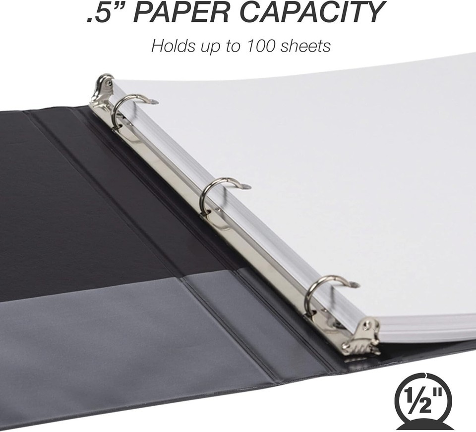 1/2-Inch Binder: Made of durable polypropylene/vinyl and chipboard, our three ring binder is ideal for light daily use at home, school, and the office