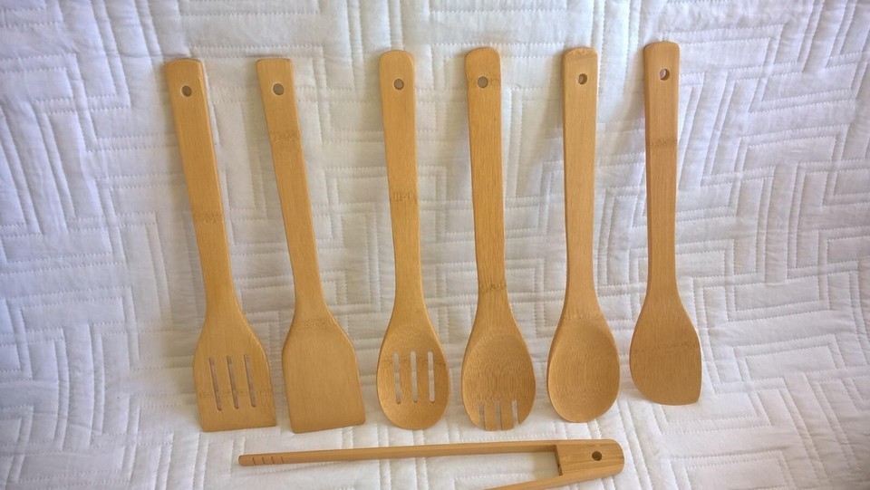 7 Pieces Utensils: Included fried spatula, slotted spoon, strainer spoon, soup ladle, salad fork, spatula, kitchen tongs. Go from cooking to serving, let the dishes have a natural and fresh flavor