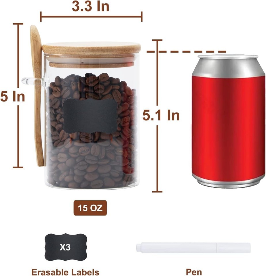 ?Multiple Uses? The 15 oz (450ml) capacity glass canister is perfect for storing and preserving various foods, including bath salts, preserves, jams, sugar, tea, creamer, nuts, coffee beans and powder, herbs, spices, seasonings, dried lavender flowers, rose petals, snacks and overnight oats. In addition, the included natural bamboo spoon helps you easily obtain what you need