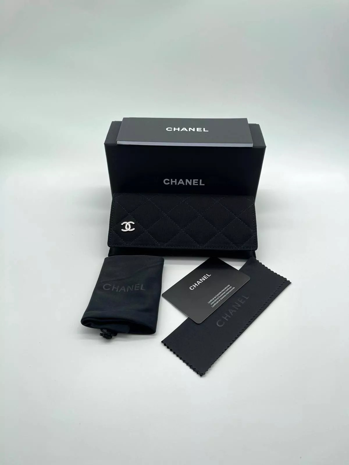 Chanel Sunglasses are supplied with the box, case, cleaning cloth, pouch and manufacturer information.