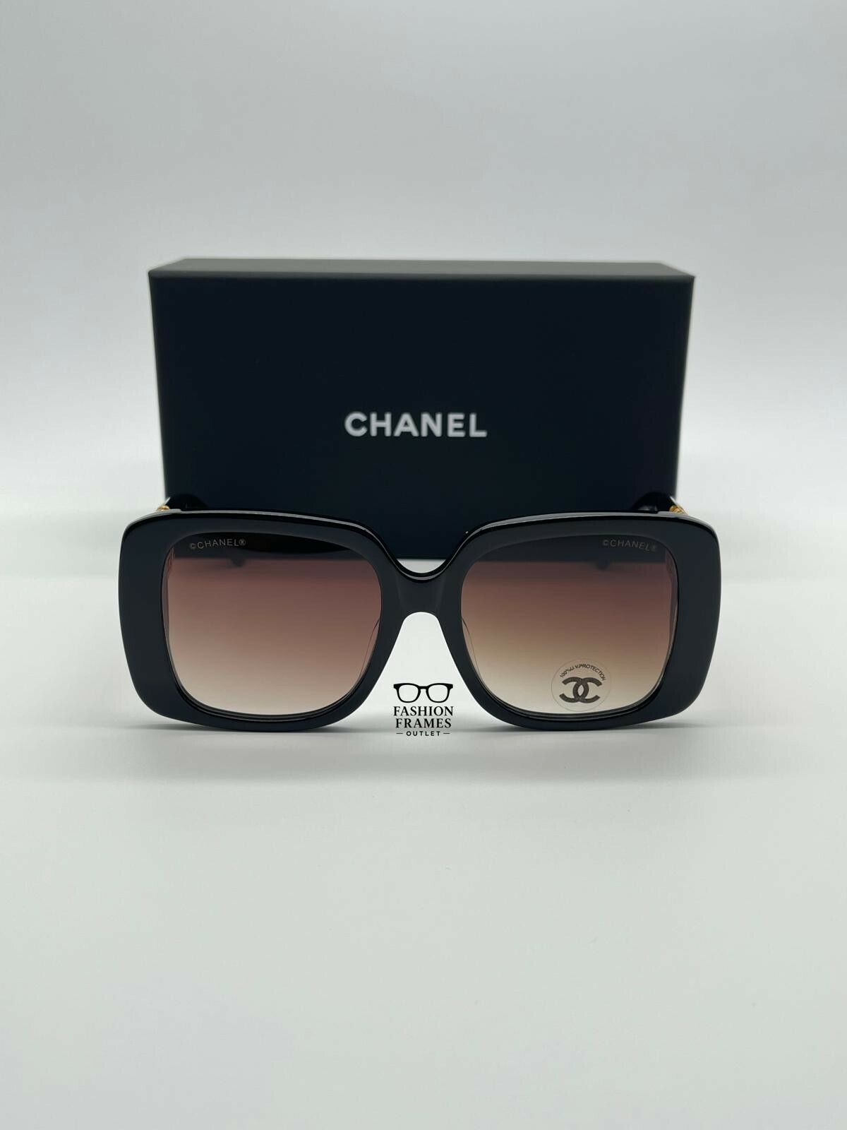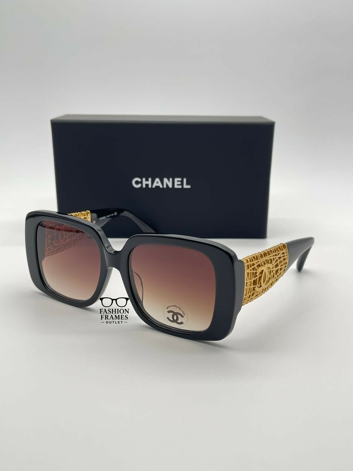 CHANEL CH5532 Black Gold Jewel Tweed Sunglasses with CC Logo Brown Gradient Lenses