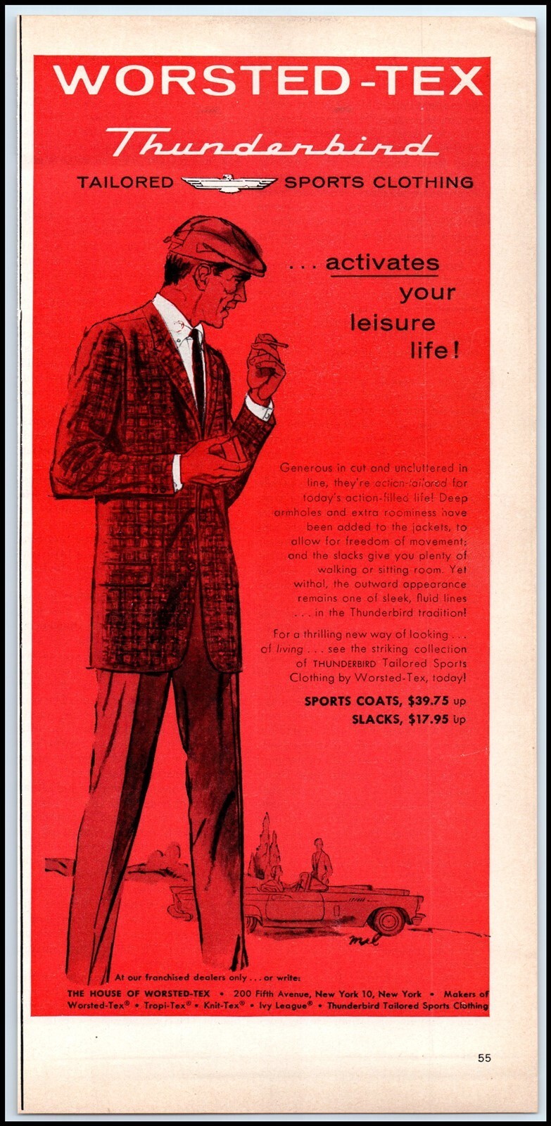 1950s Worsted-Tex "Thunderbird" Tailored Sports Clothing For Men PRINT AD BX3