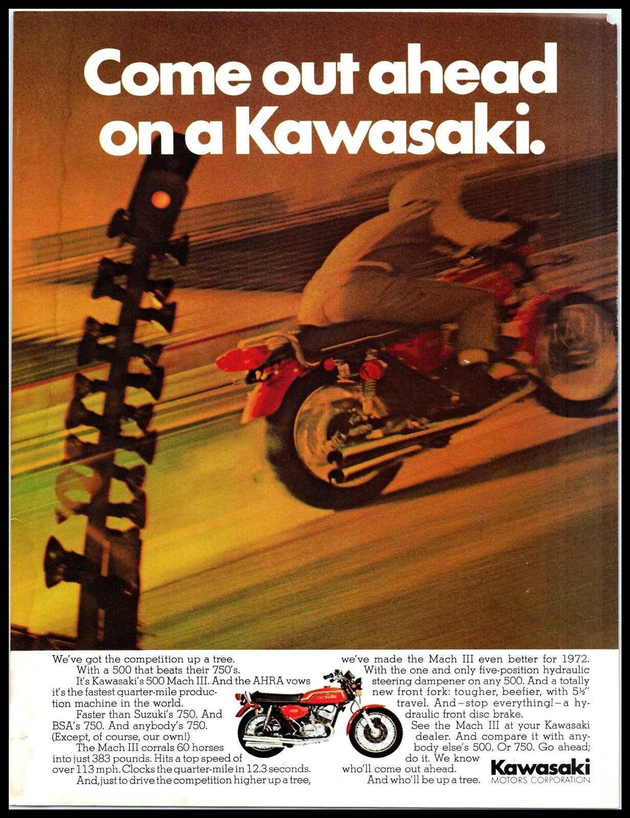 1972 Magazine Motorcycle Print Ad - Kawasaki and similar items
