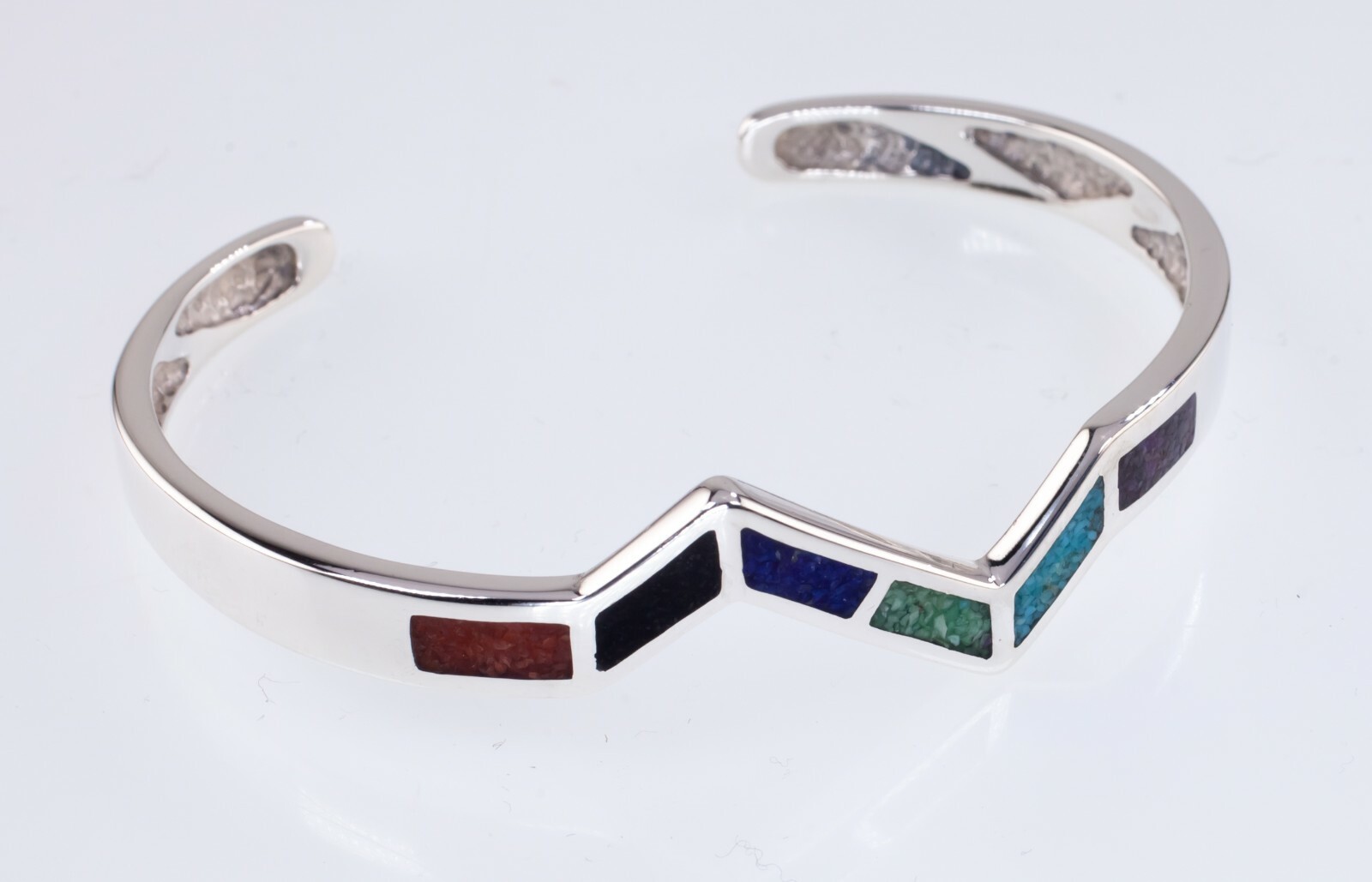 Waldeck Jewelers Sterling Silver Lapidary Inlay Cuff Bracelet Gorgeous