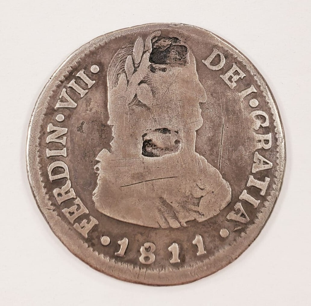 1811 Chile 2 Reales Moneda de plata en buenas condiciones con marcas de corte! KM 74