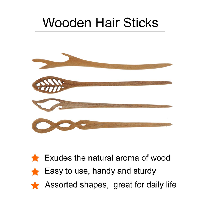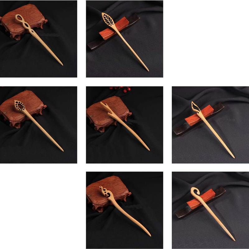 7pc Vintage Wood Hair Sticks Set – Chinese Japanese Bun Pin Fork Clips