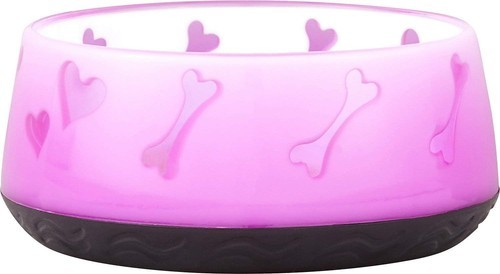 This attractive pink bowl by Dogit serves up food or water in style thanks to a cute design pattern featuring hearts and bones. The bowl has a non-skid bottom that prevents sliding and spilling. It is made of BPA-free plastic for safe and lasting use. It is also dishwasher safe.