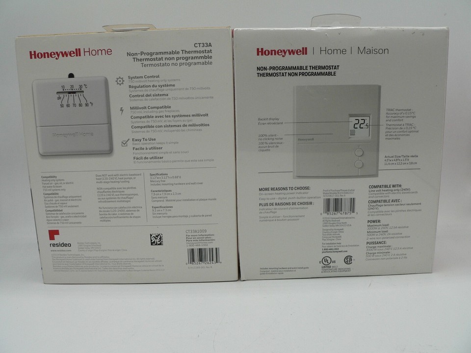 Honeywell Home Thermostats RLV3150A1012, CT33A Thermostats (Lot of 2) open box