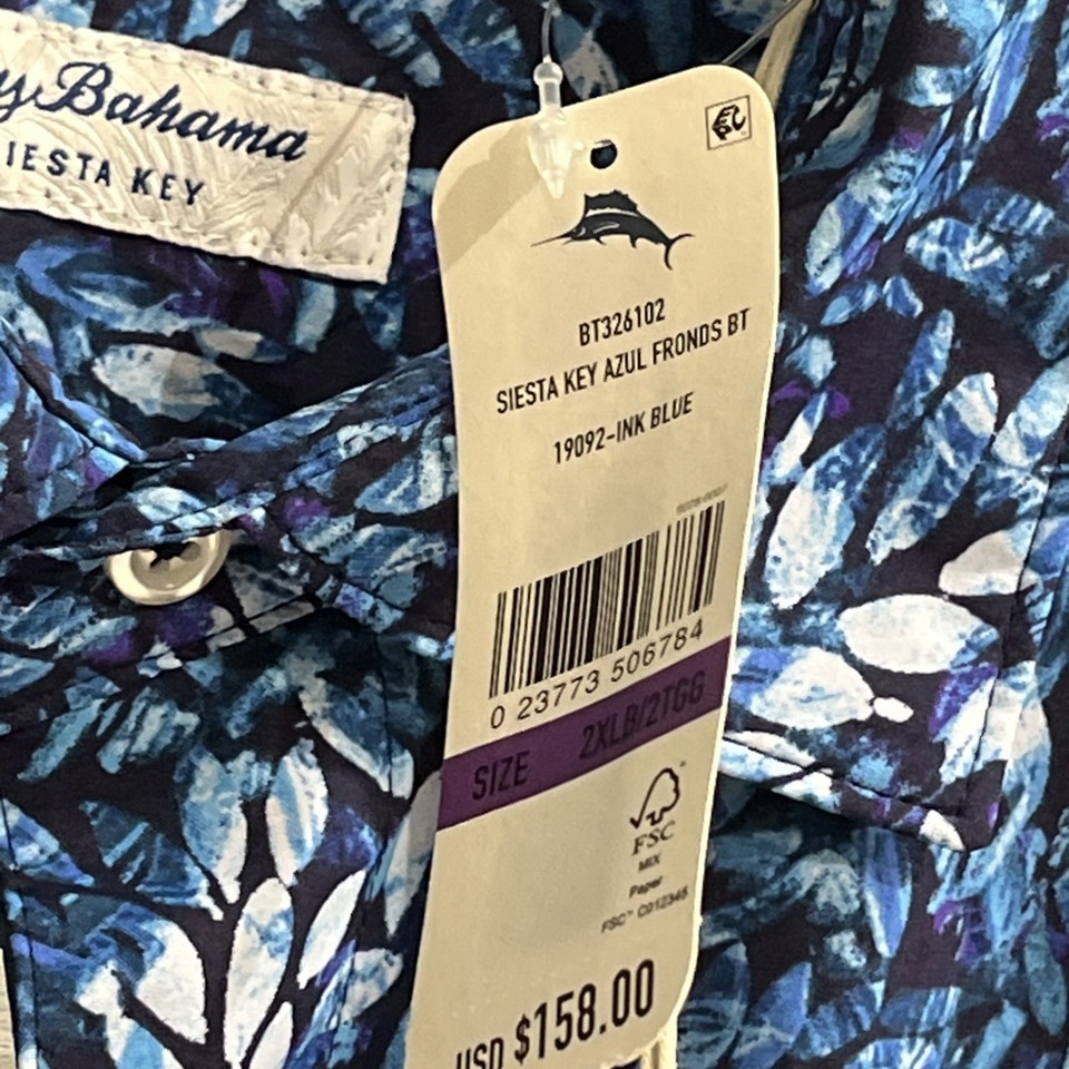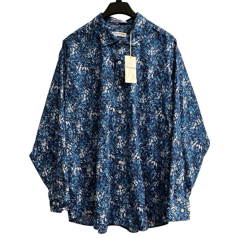 Tommy Bahama Siesta Key Azul Fronds Shirt Mens 2XL Ink Blue Button Down UPF 30