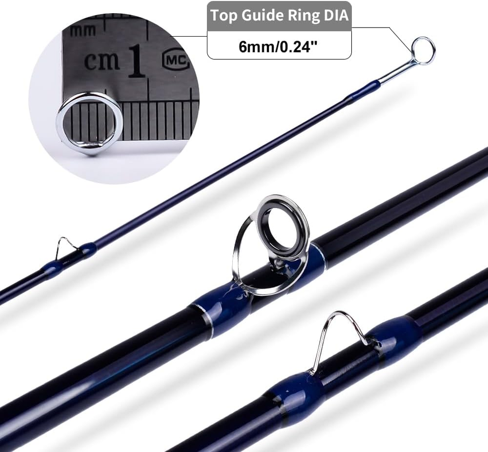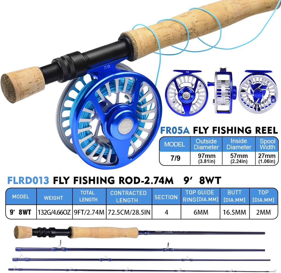 The 4-piece fly rod, constructed from premium carbon fiber, features a high-grade cork grip for enhanced comfort and control during casting. The solid wood reel seat and stainless steel stripper guide with SiC ring ensure durability and performance. The accompanying silver-blue fly reel is designed for versatility, equipped with stainless steel internal components, a quick-release spool, and a disc drag system for precise tension adjustments, making it ideal for managing different fishing scenarios.