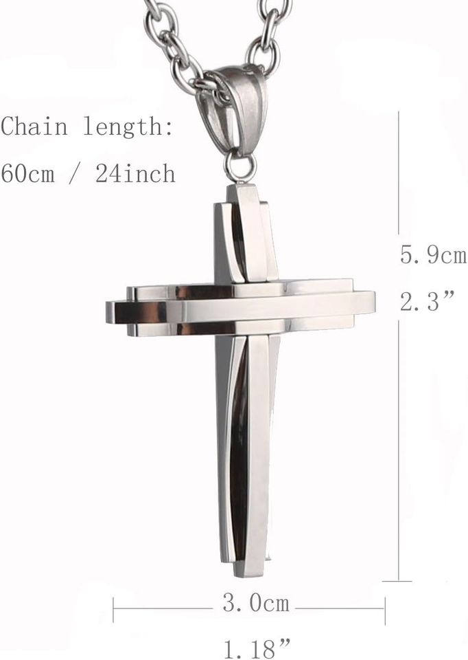 Men's Stainless Steel Silver Cross Pendant Necklace, 22+2 Inch Chain