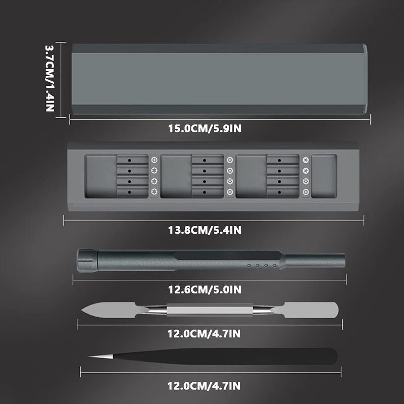 The 44-in-1 Precision Magnetic Screwdriver Set is an essential tool for professionals and DIY enthusiasts alike, designed to meet a wide range of repair and assembly needs. This comprehensive set includes a variety of precision screwdrivers, each crafted from high-quality chrome-vanadium steel, ensuring durability and longevity. The magnetic feature allows for easy handling and secure placement of screws, making it ideal for intricate tasks such as electronics repair, computer assembly, and other detailed projects. The ergonomic handle provides a comfortable grip, allowing for extended use without discomfort, making it perfect for both quick fixes and lengthy repair sessions.