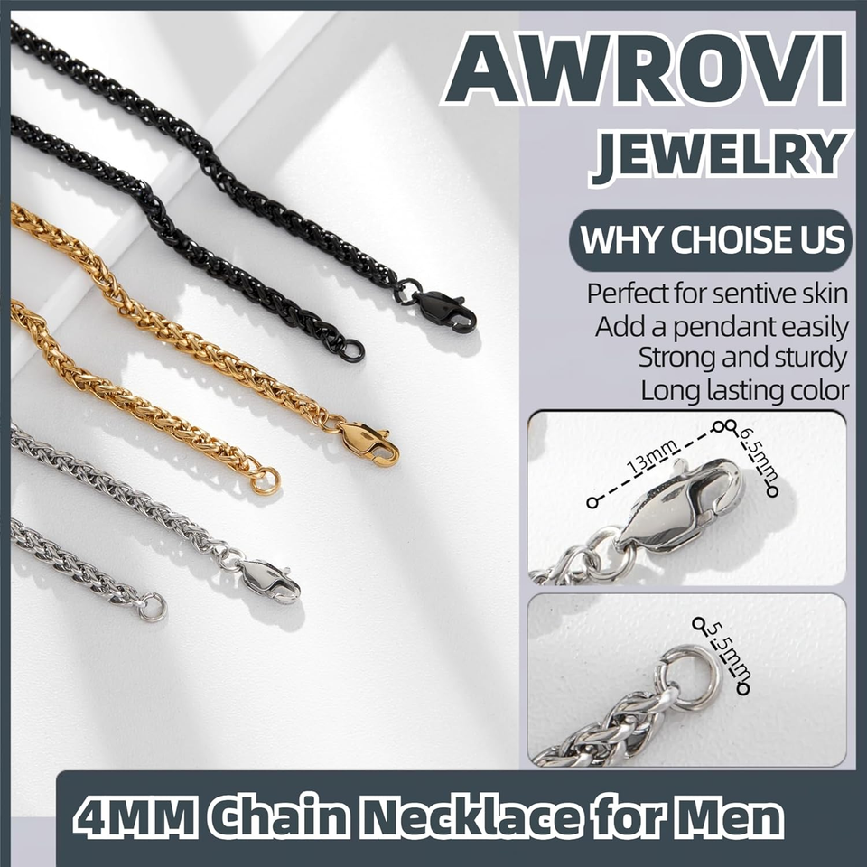 The 3-Piece Stainless Steel Wheat Chain Necklace Set for Men and Women is the perfect accessory to elevate any outfit. Crafted with precision, this set features a unique wheat chain design that offers both elegance and durability. Ideal for everyday wear or special occasions, these necklaces can be worn individually for a subtle touch or layered together for a more bold statement. Whether you're dressing up for a formal event or adding flair to a casual look, this versatile set is sure to impress. Made from high-quality stainless steel, these necklaces are resistant to tarnishing and corrosion, ensuring they maintain their shine and beauty over time. The 22-inch length provides a comfortable fit for most, while the lobster clasp ensures easy wear and removal. This necklace set makes for a thoughtful gift for loved ones, allowing them to express their personal style with a timeless piece that transcends gender boundaries.
