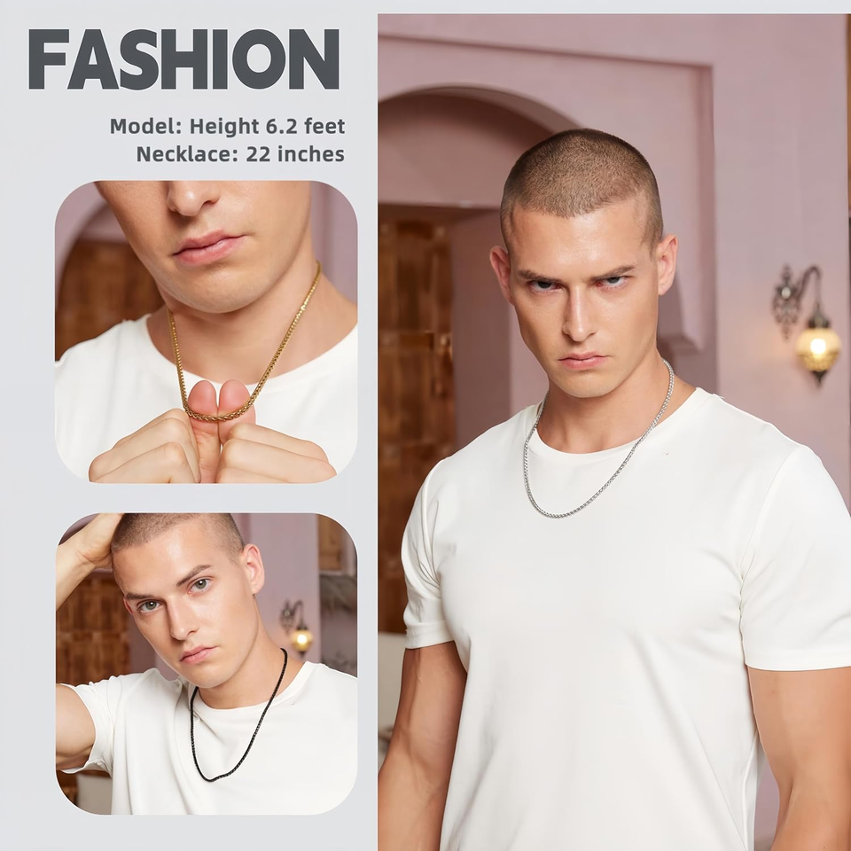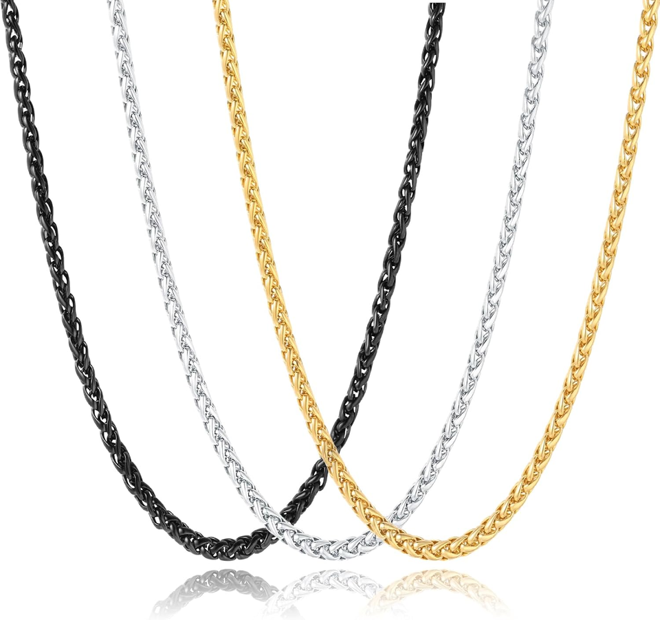 3-Piece Stainless Steel Wheat Chain Necklace Set for Men and Women, 22"
