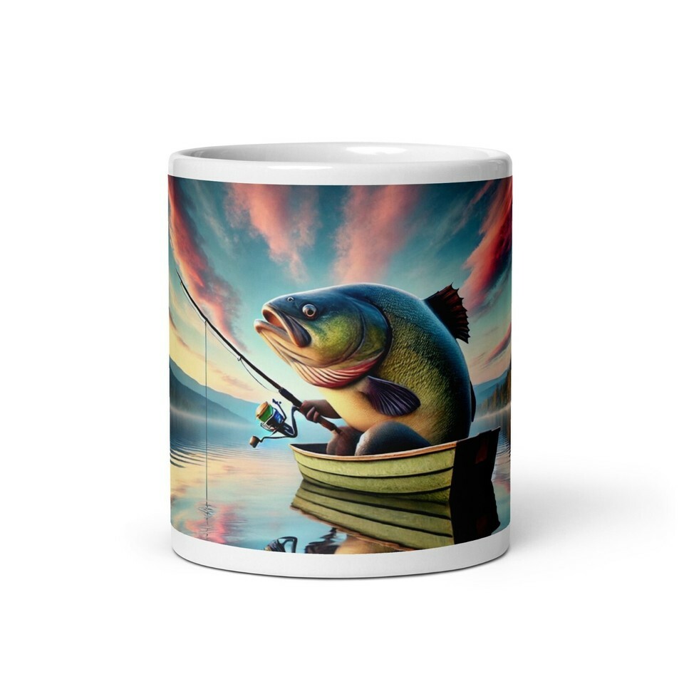 Funny Fishing Mug ? Fish in a Boat ? Coffee Cup for Anglers