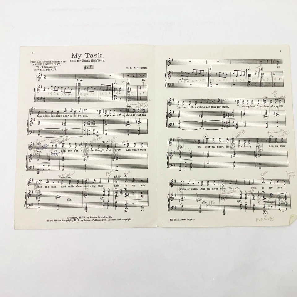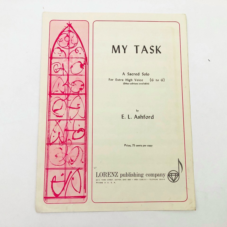 My Task by E I Ashford Sheet Music Vocal Sacred Extra High Voice Vintage
