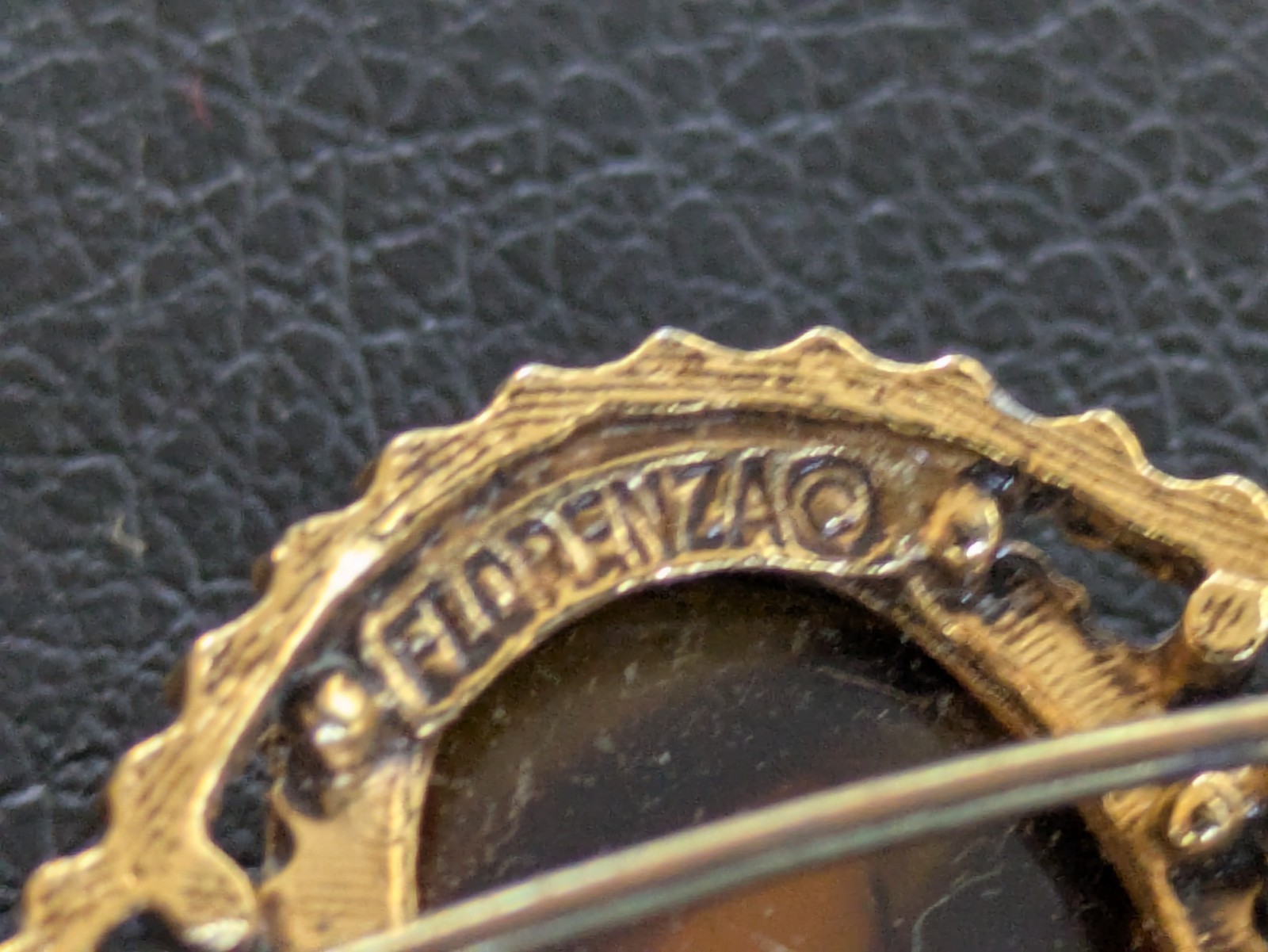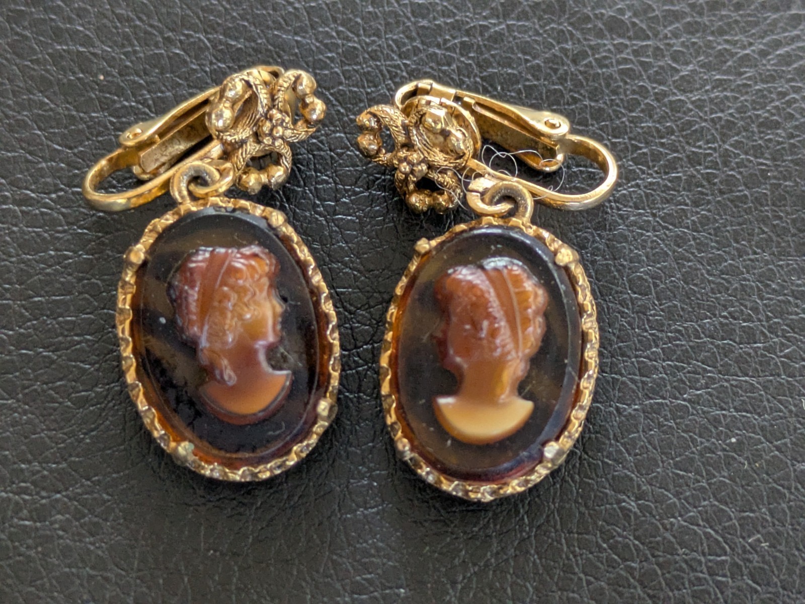 Die Broochohrringe von Florenza Brown Cameo -Bar sind Vintage -Stücke aus der Fashion Jewelry -Abteilung mit einer goldenen Farbe mit braunen Akzenten. Diese signierten Ohrringe bestehen aus Harz, Glas und Strasssteinen mit einem barformigen Design, das jedem Outfit einen Hauch von Eleganz verleiht. Die ursprüngliche Marke Florenza sorgt für eine hohe Qualitat und einen einzigartigen Stil, der mit Sicherheit ein Statement abgibt. Perfekt für Frauen, die ihrem Ensemble einen Hauch von Vintage -Charme verleihen mochten.