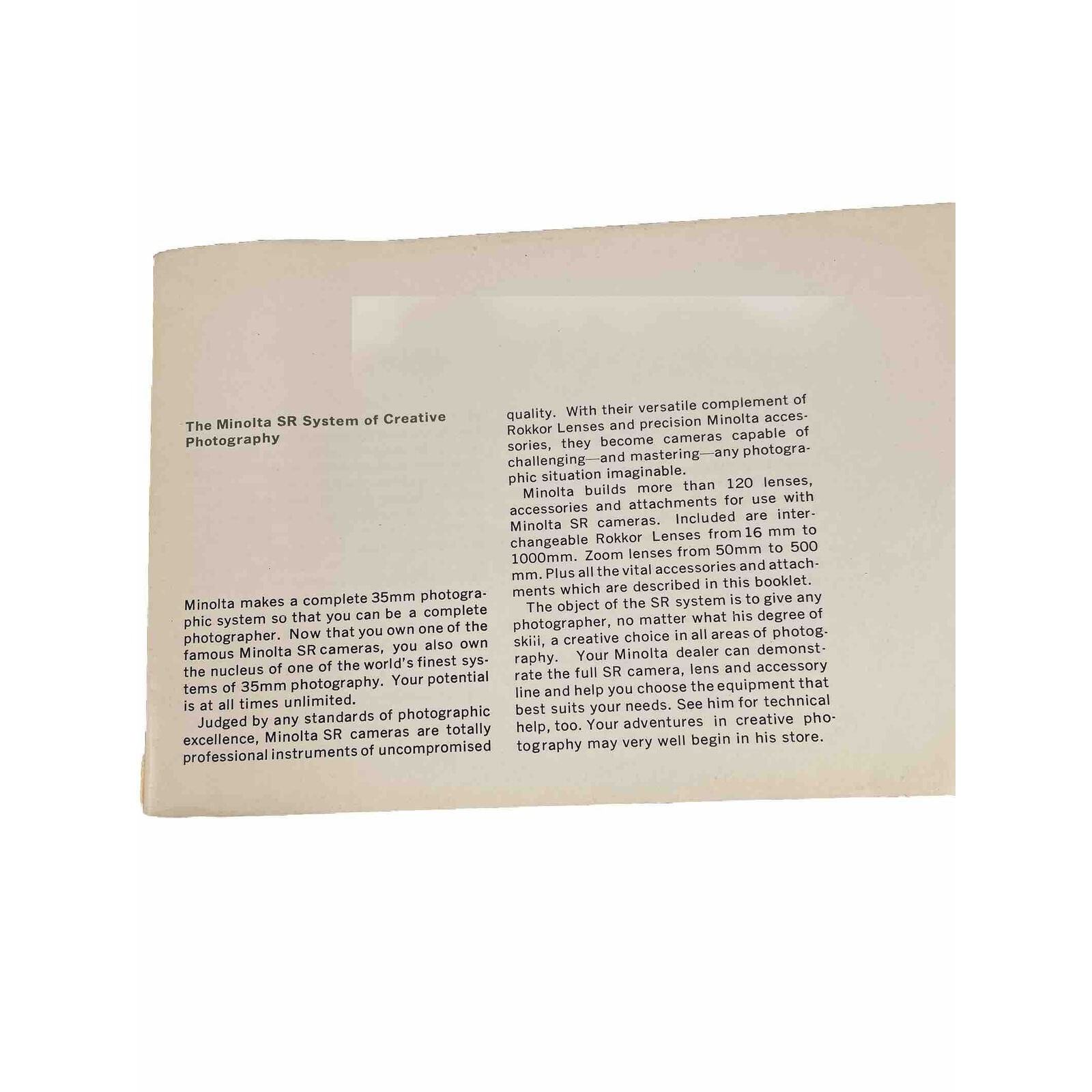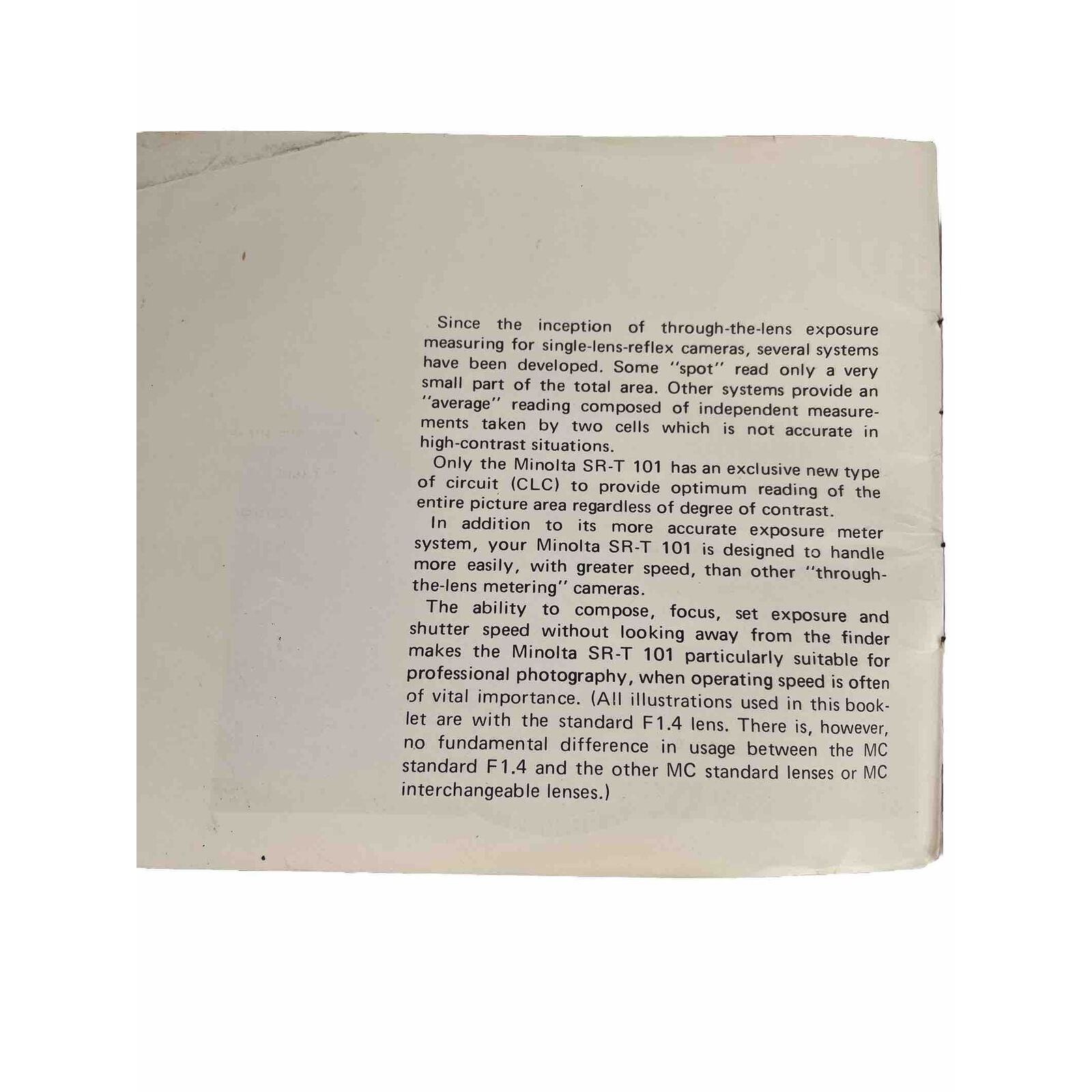 1450 ?Vintage Minolta SR-T 101 Owner?s Manual SR System Guide ? Camera Manuals. System Of Creative Photography Booklet. Vintage Camera Manual Both booklets are in great condition. Please look at the pictures. Always consider offers.