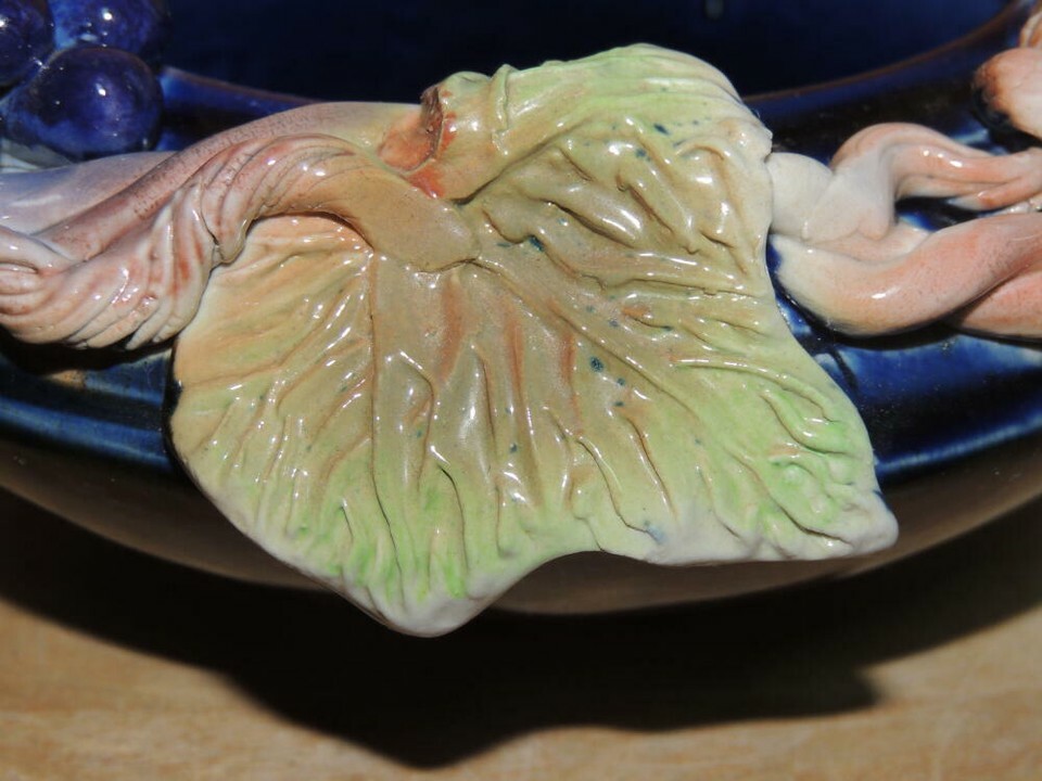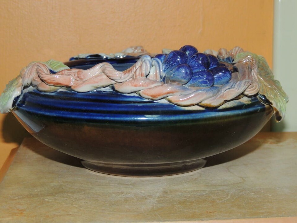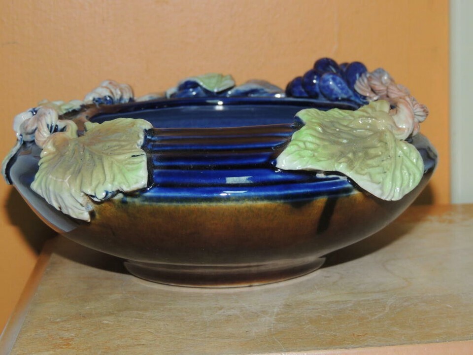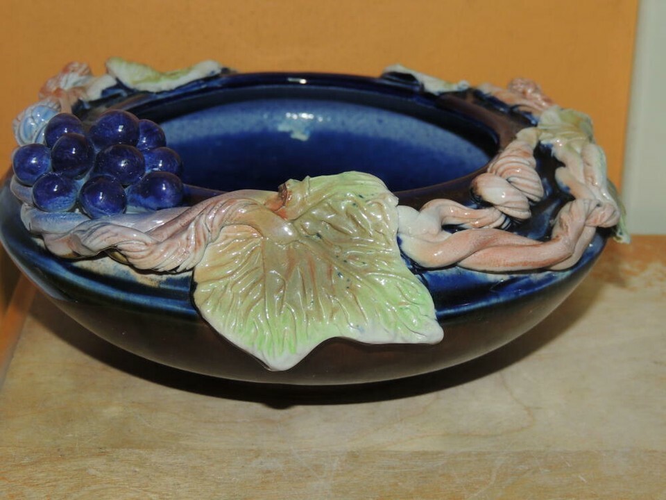 Grapevine Grape Branch 7"x3" Bowl Polychrome Drip Glaze Majolica style Chinese?
