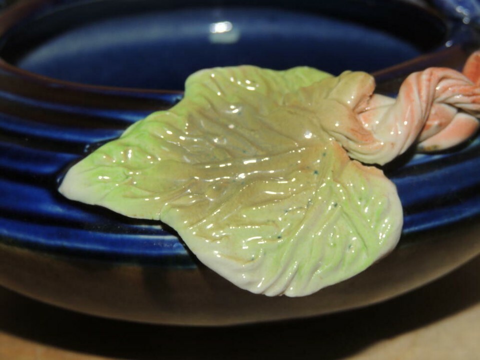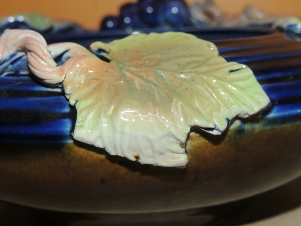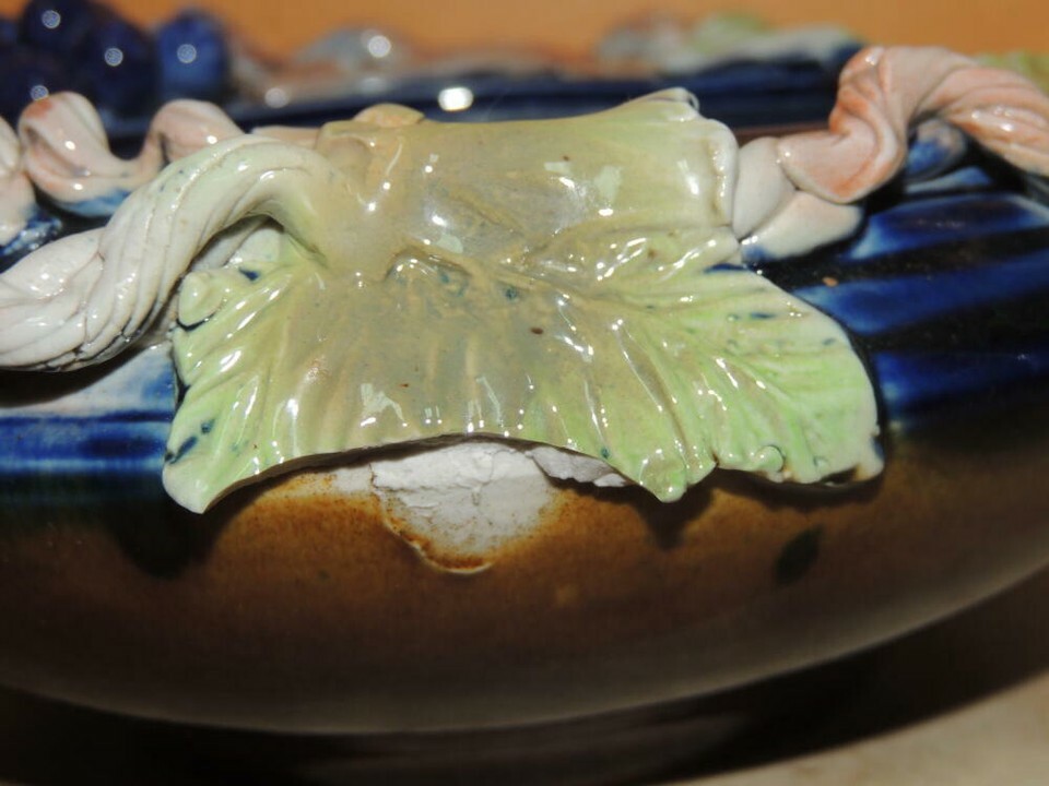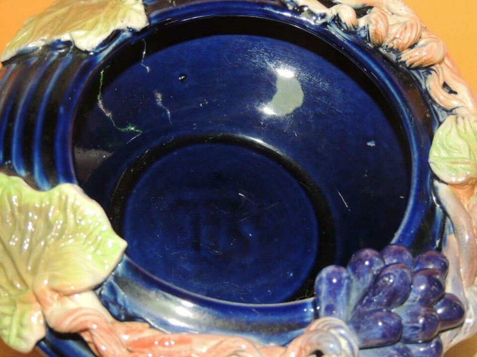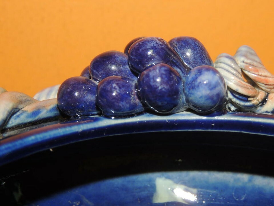 Grapevine Grape Branch 7"x3" Bowl Polychrome Drip Glaze Majolica style Chinese?