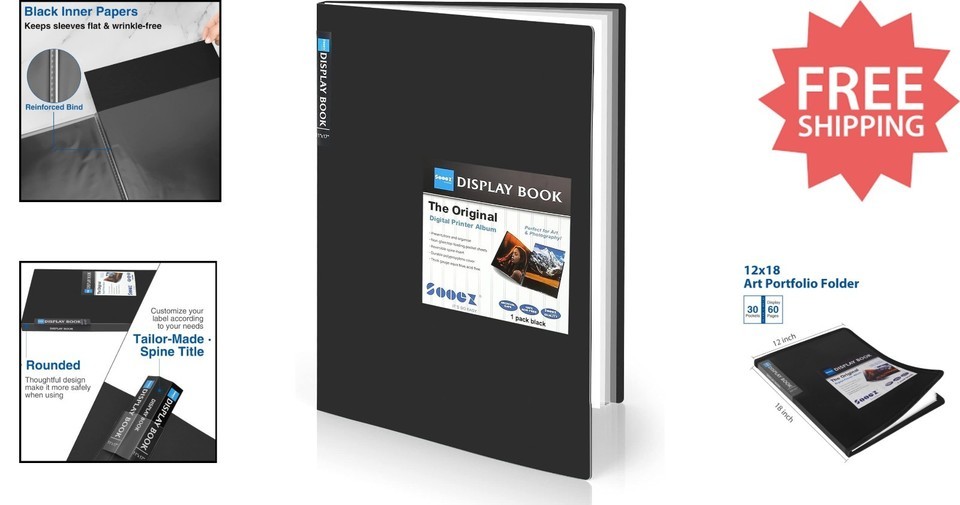 Discover our large 12x18 art portfolio folder designed to showcase and protect your artwork with exceptional clarity and durability. Each sleeve features a black inner sheet that provides a perfect background for smaller art pieces, ensuring your work remains flat and wrinkle-free. The reversible spine insert allows you to customize and categorize your collection effortlessly, making it easy to locate your favorite pieces. Crafted from high-quality, waterproof polypropylene, the folder offers archival-quality, acid-free, non-glare protection. Its thickened cover resists cracking, ensuring long-lasting performance. The folder includes 30 top-loading sleeves, accommodating a total of 60 pages, ideal for storing and displaying your 12x18 artwork. Plus, the crystal clear sheets lie flat when open, providing a seamless viewing experience. To ensure fast and reliable delivery, we work with multiple fulfillment partners and suppliers. Depending on availability and location, your order may ship from different warehouses or arrive in packaging that varies from item to item. Tracking details are typically provided shortly after shipment, and customer satisfaction remains our top priority. Please note that due to carrier policies and regional regulations, certain items may not be eligible for delivery to specific states or territories.