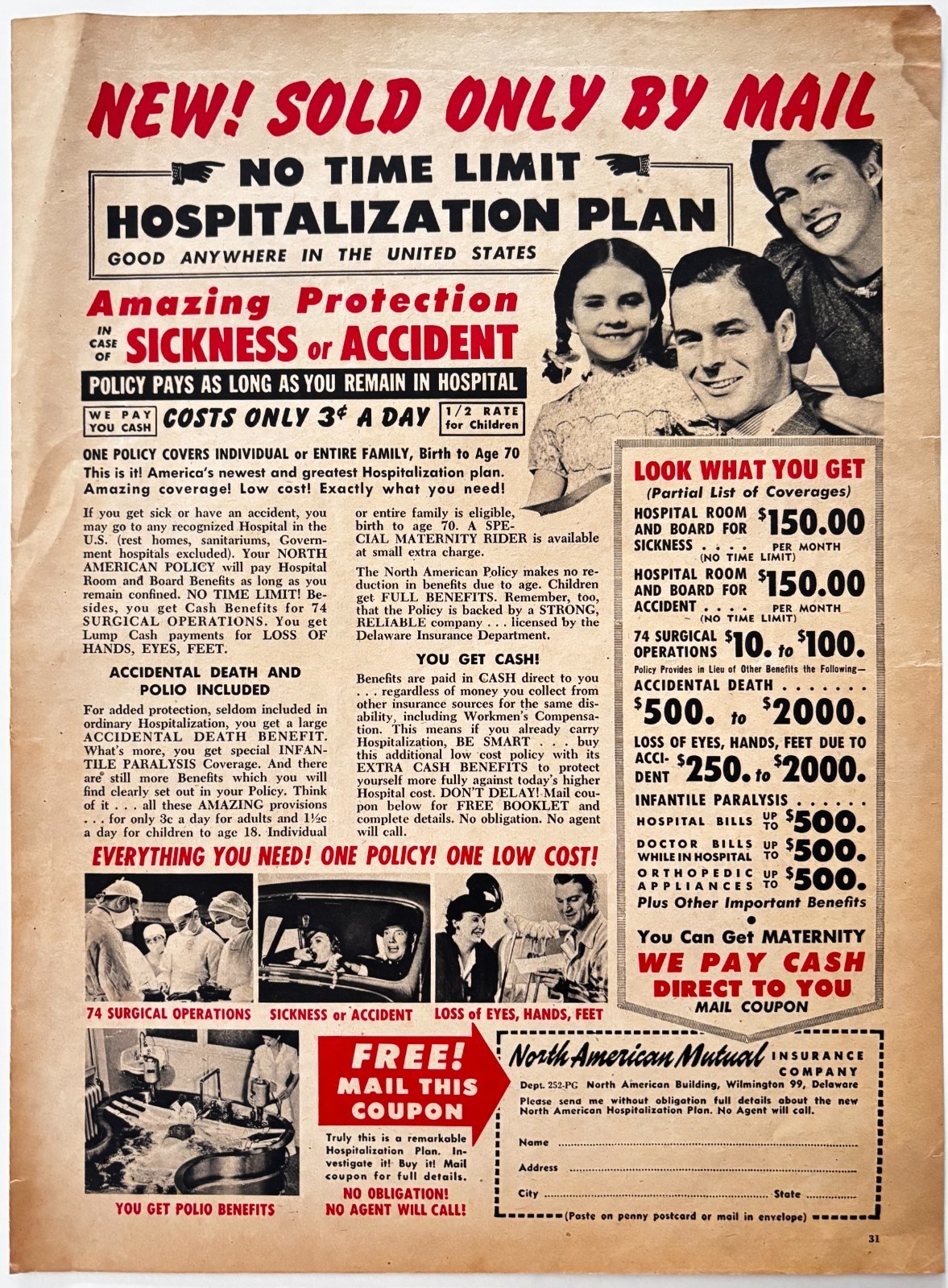 1952 North American Mutual Insurance Co Advertisement Hospitalization Plan DWXX5