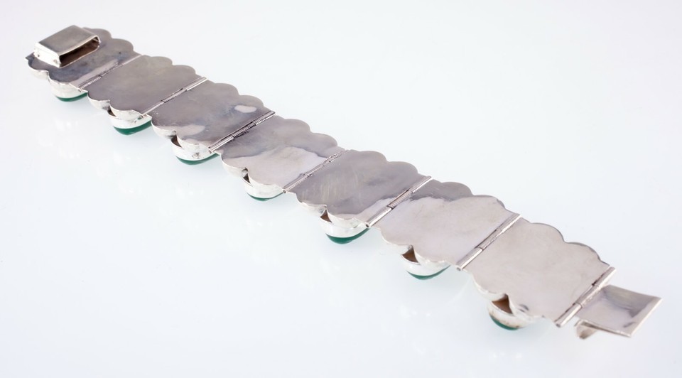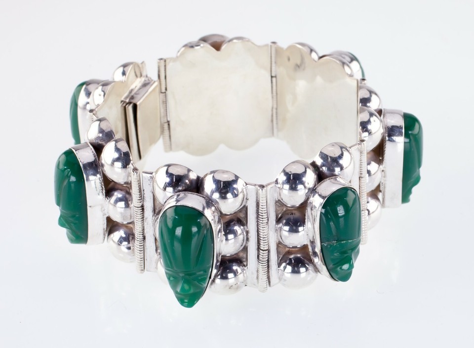 Gorgeous Sterling Silver Green Jade Warrior Bracelet Made in Mexico
