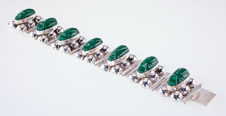 Gorgeous Sterling Silver Green Jade Warrior Bracelet Made in Mexico All shipments include insurance and delivery confirmation or signature confirmation. Local Pick-up is available in our showroom. All international packages will have the required customs declaration and value of order. Your continuing satisfaction is very important to us. We offer a 30 day money back return policy. If you are unhappy with your purchase for any reason, please notify us so that we can begin the returns process. All items for sale are available for viewing at our Southern California showroom. We would like to thank all of our loyal customers for their continued support. If you have any questions, comments or concerns, please click "Ask a question" below, and we will respond as soon as possible. Thank you.