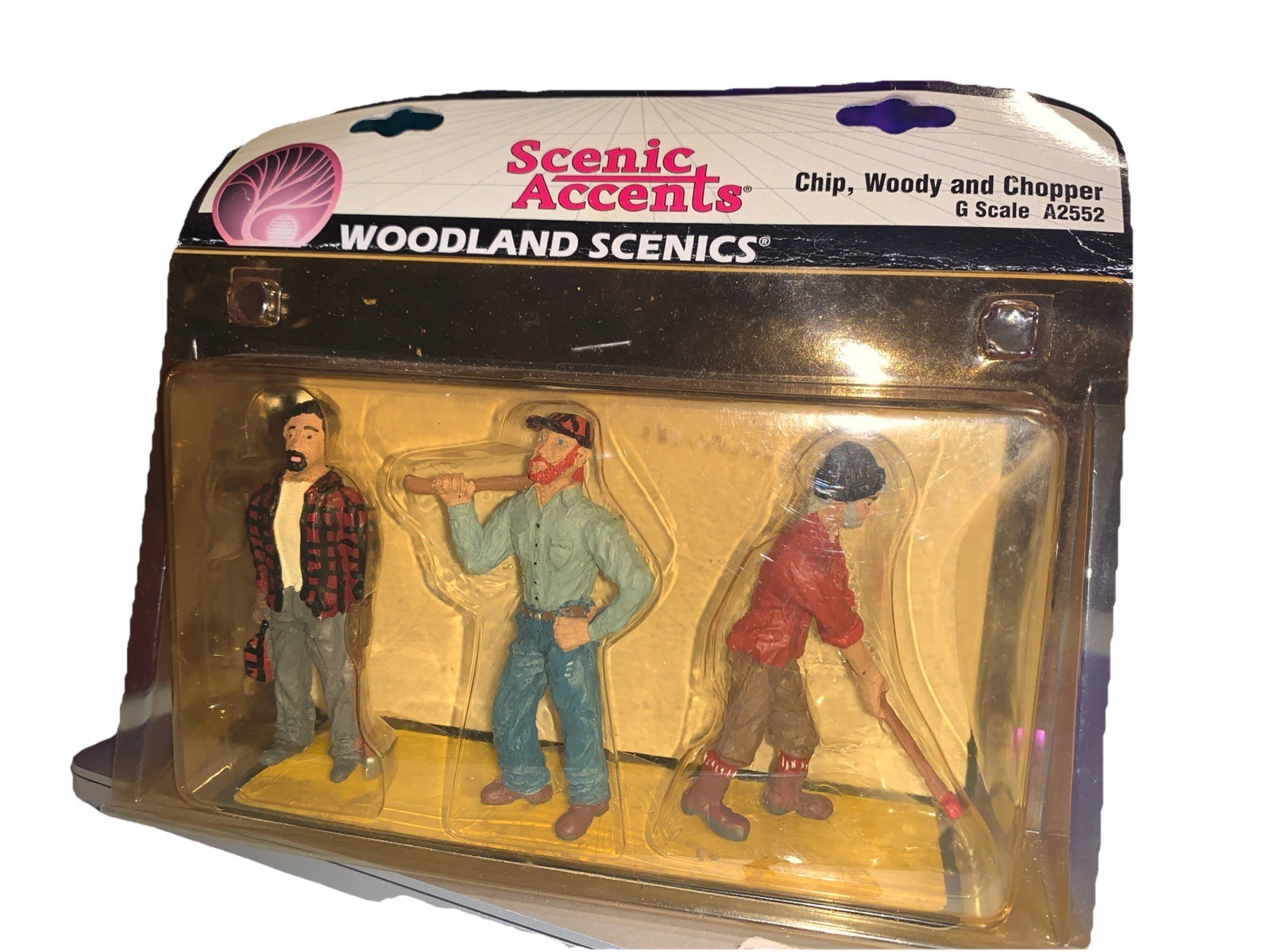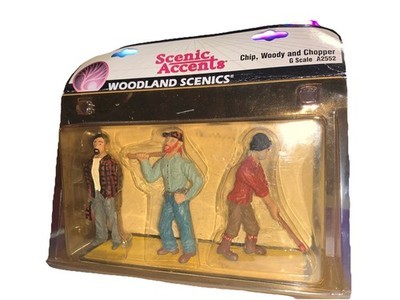 The Woodland Scenics G Chip Woody Chopper is a set of model figures designed for use in model railroads and trains. Produced by the Woodland Scenics brand, these details add a realistic and interactive element to model train layouts. Perfect for collectors and hobbyists, this set offers a charming addition to any train layout, bringing life and character to the scene.